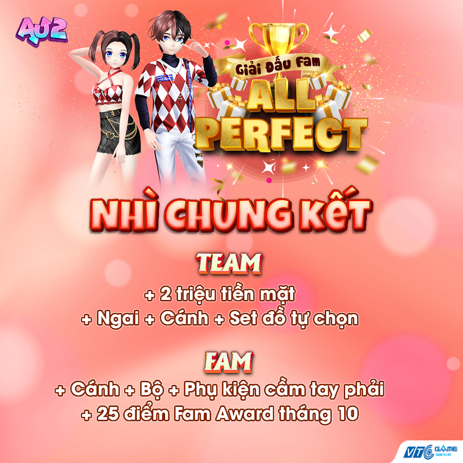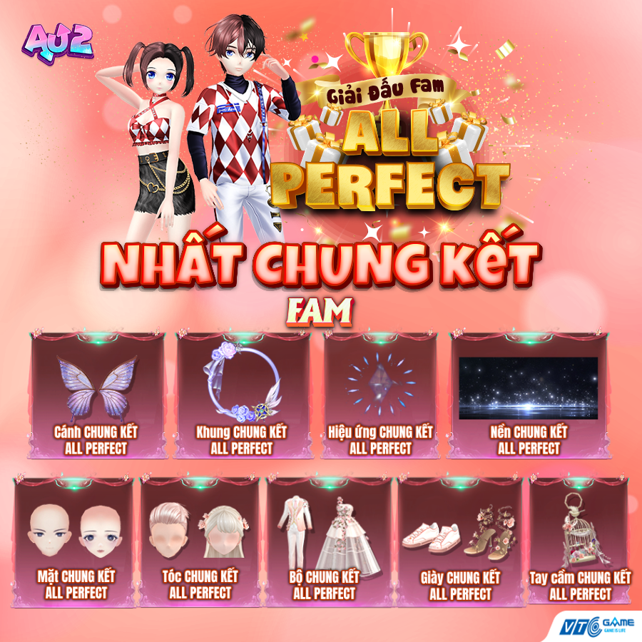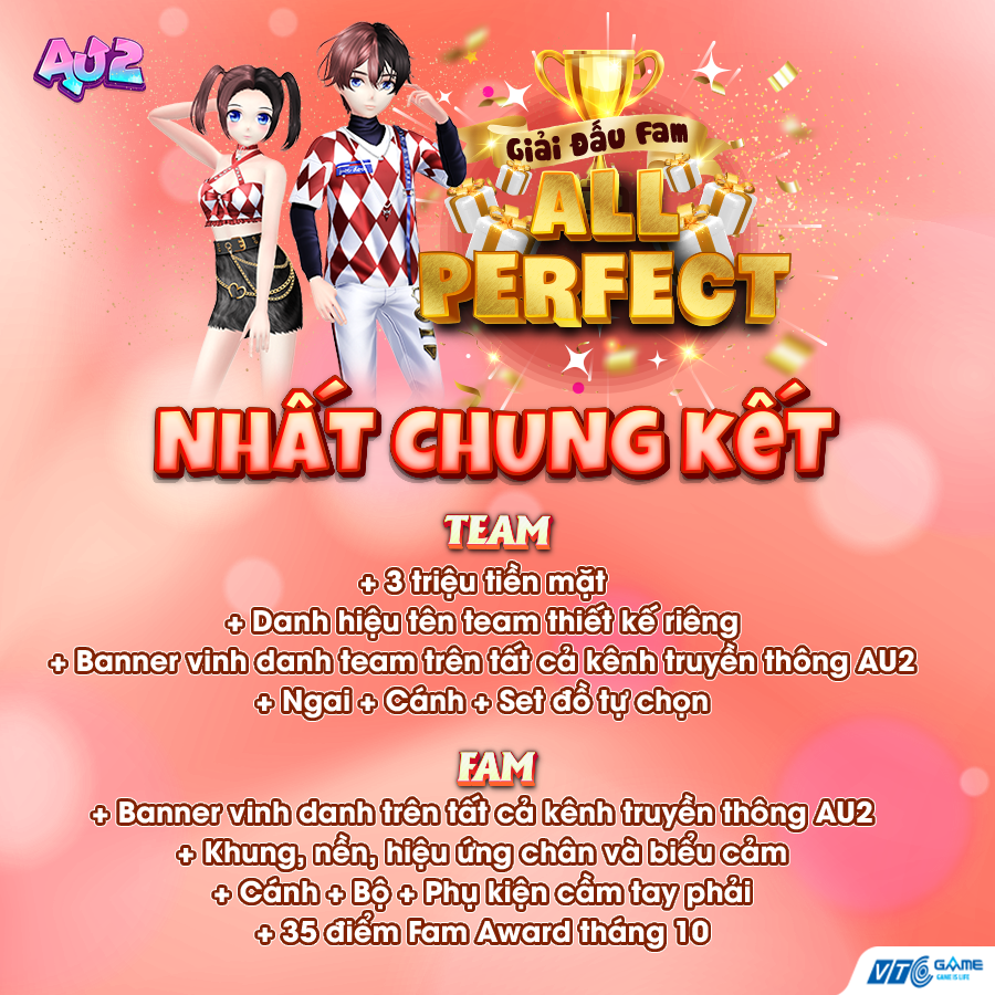 + Fam: Banner vinh danh Fam trên tất cả kênh truyền thông AU2 + Khung, nền, hiệu ứng chân và biểu cảm + Cánh, bộ, phụ kiện cầm tay phải + 35 điểm Fam Award tháng 10