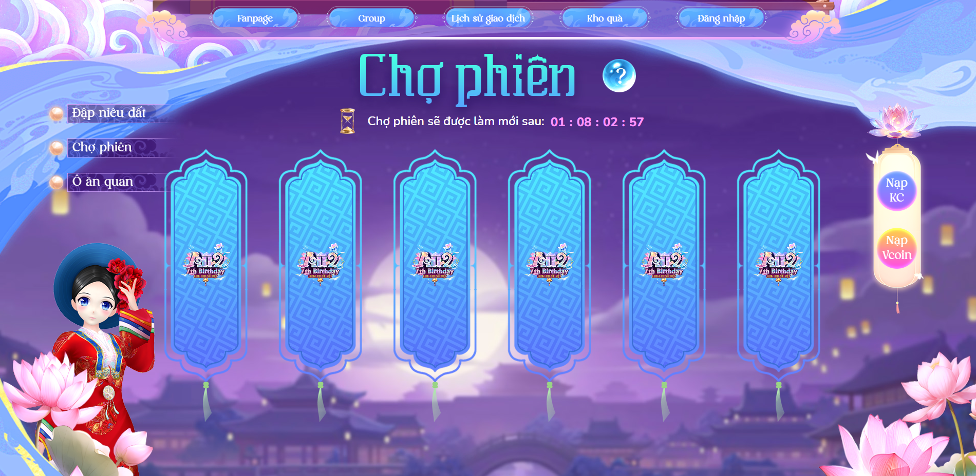 + Mỗi 02 ngày chợ phiên sẽ reset danh sách item một lần. Sau khi làm mới, các thẻ sẽ đổi sang 6 item mới hoàn toàn và chỉ xuất hiện duy nhất 01 lần trong suốt thời gian sự kiện. Các dân bay lưu ý để không bỏ lỡ những ưu đãi dành riêng cho mình nhé!