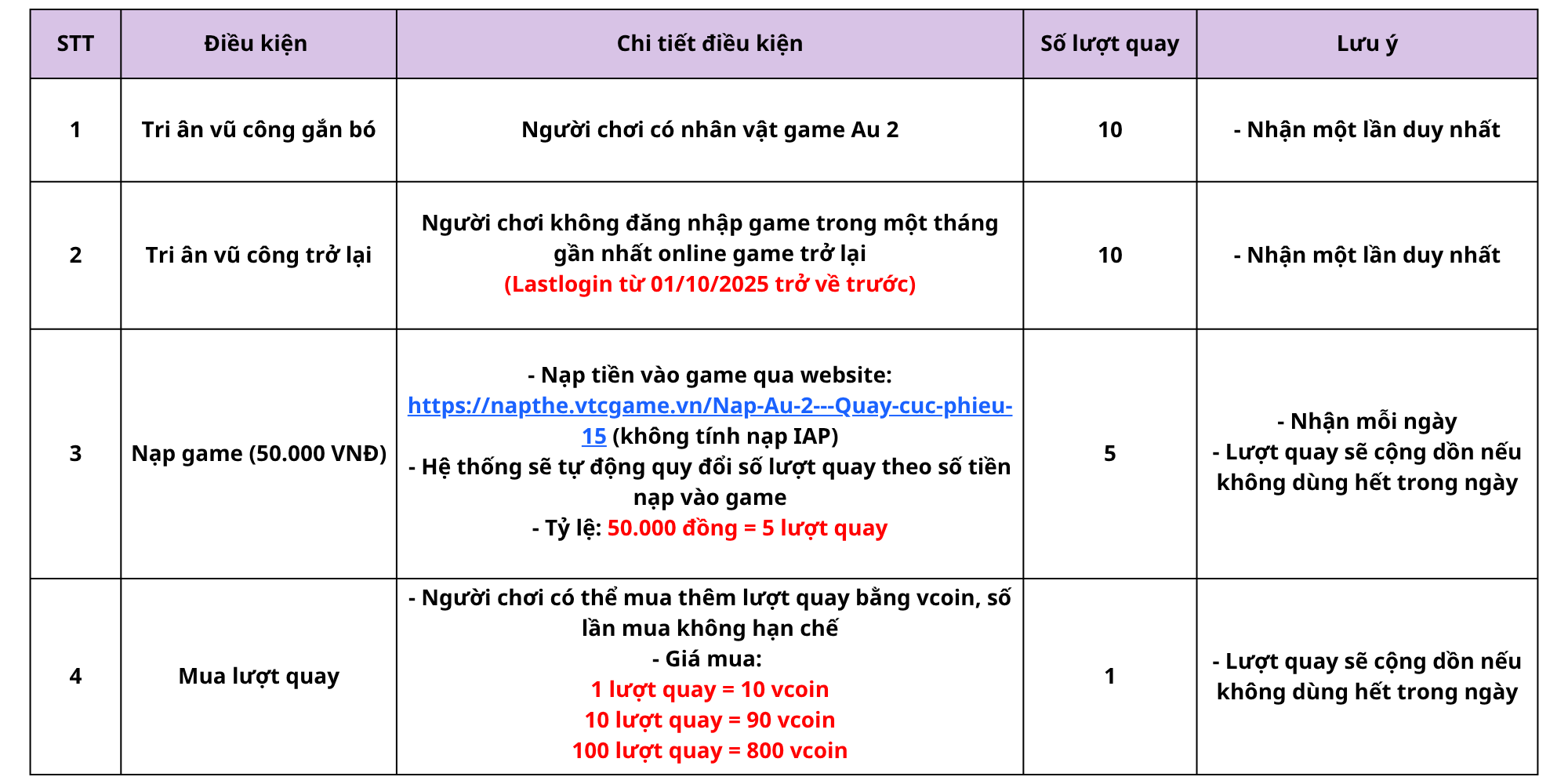 - Các tài khoản cần đăng nhập vào landing ít nhất 1 lần để hệ thống ghi nhận thông tin tài khoản. Chưa đăng nhập lần nào, khi nạp sẽ không nhận được lượt quay.