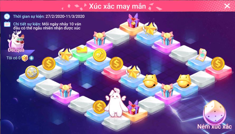 Mỗi ngày nhảy 10 ván đầu có thể ngẫu nhiên nhận được xúc xắc.