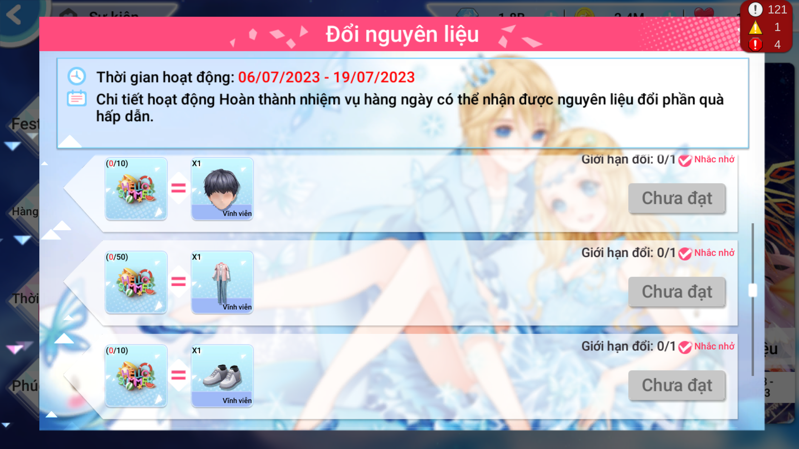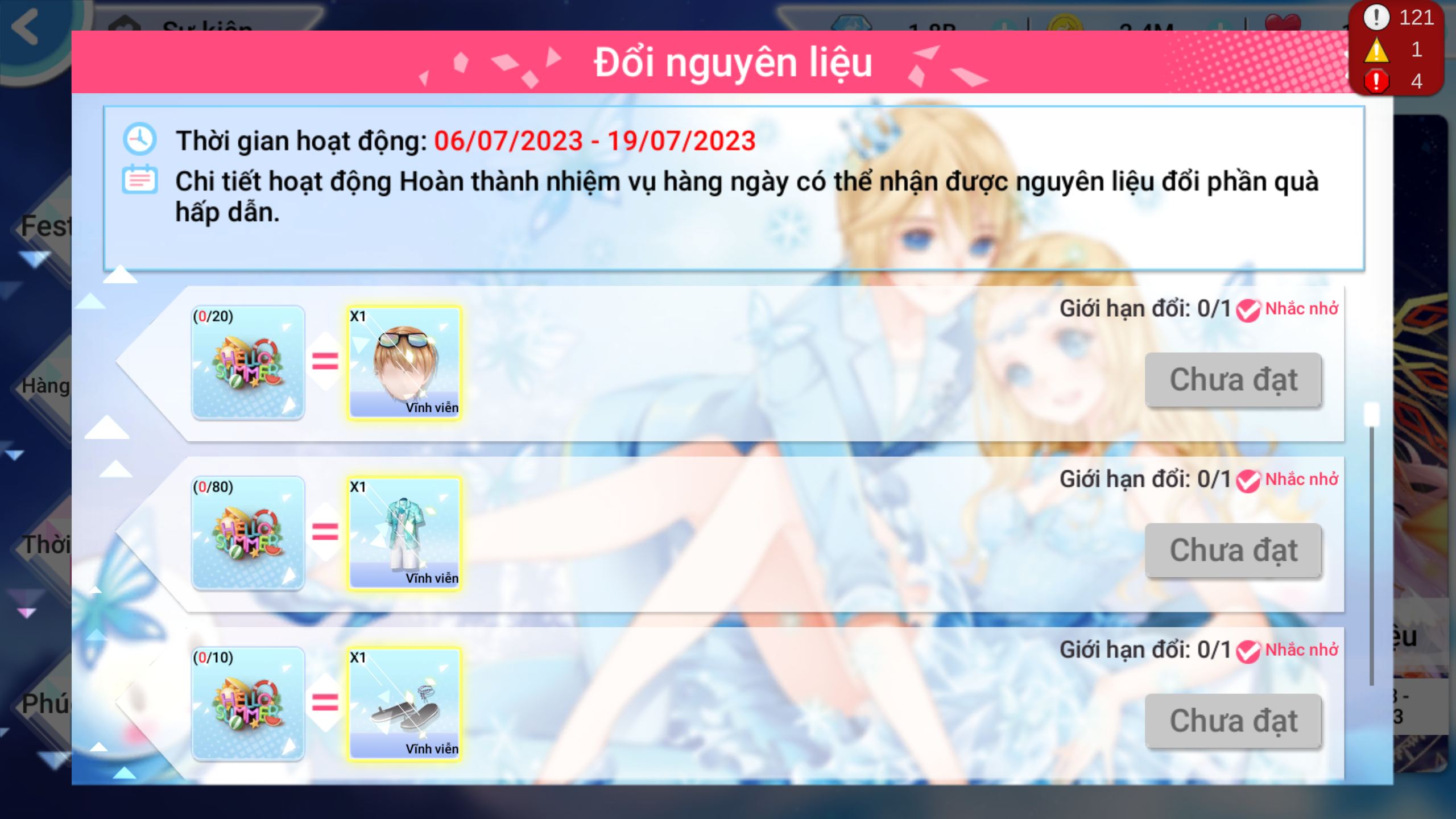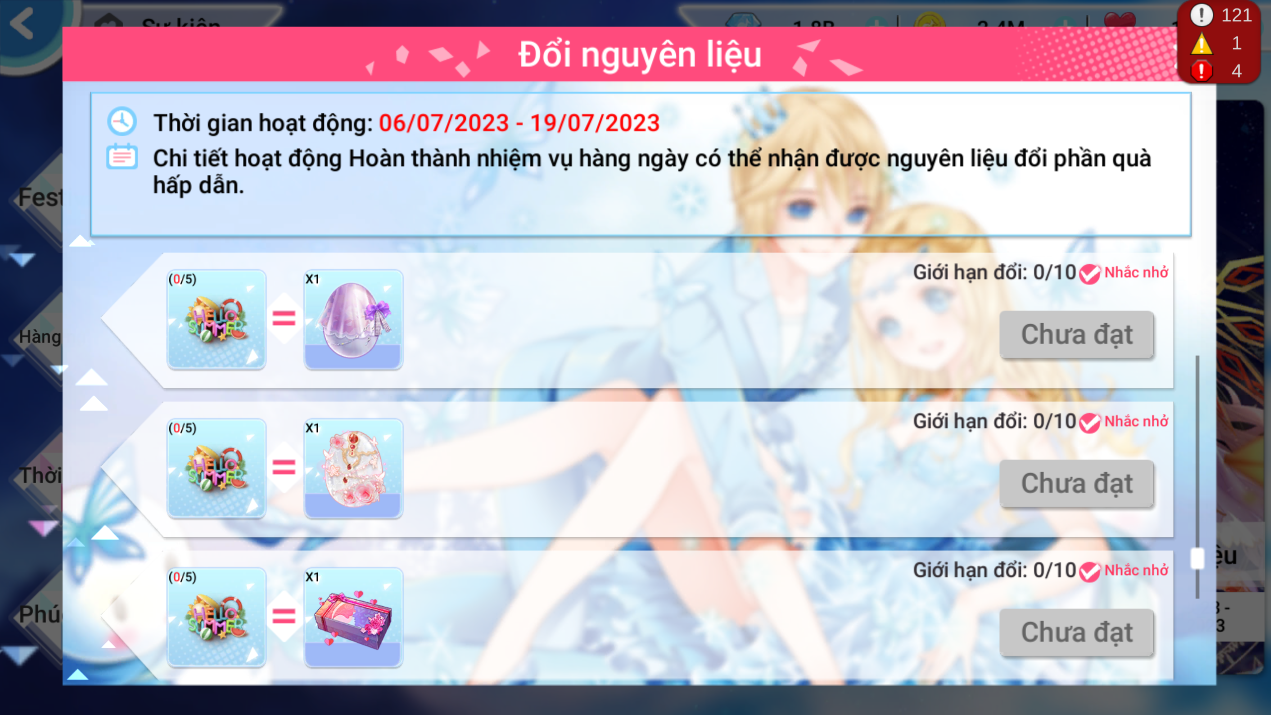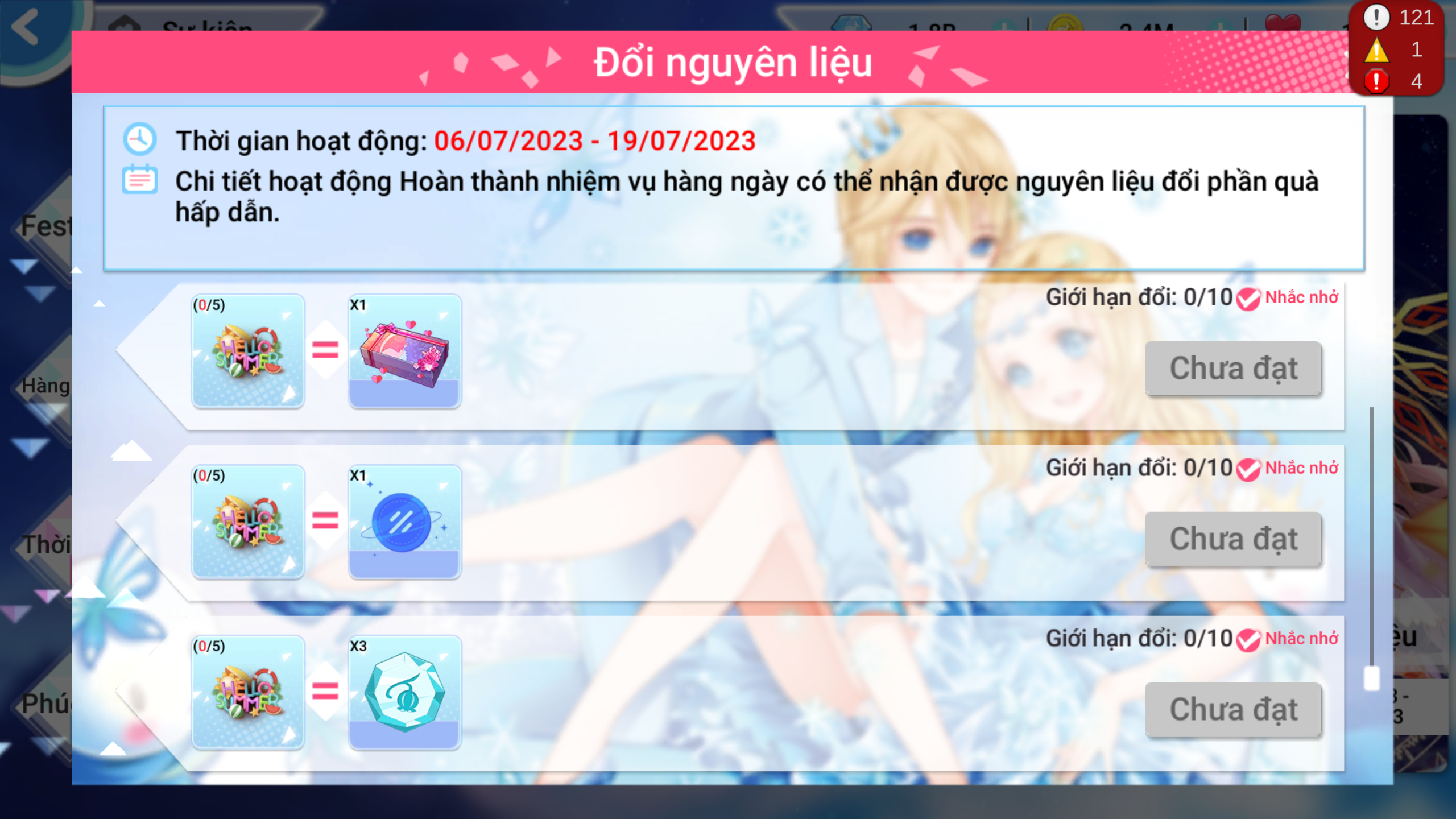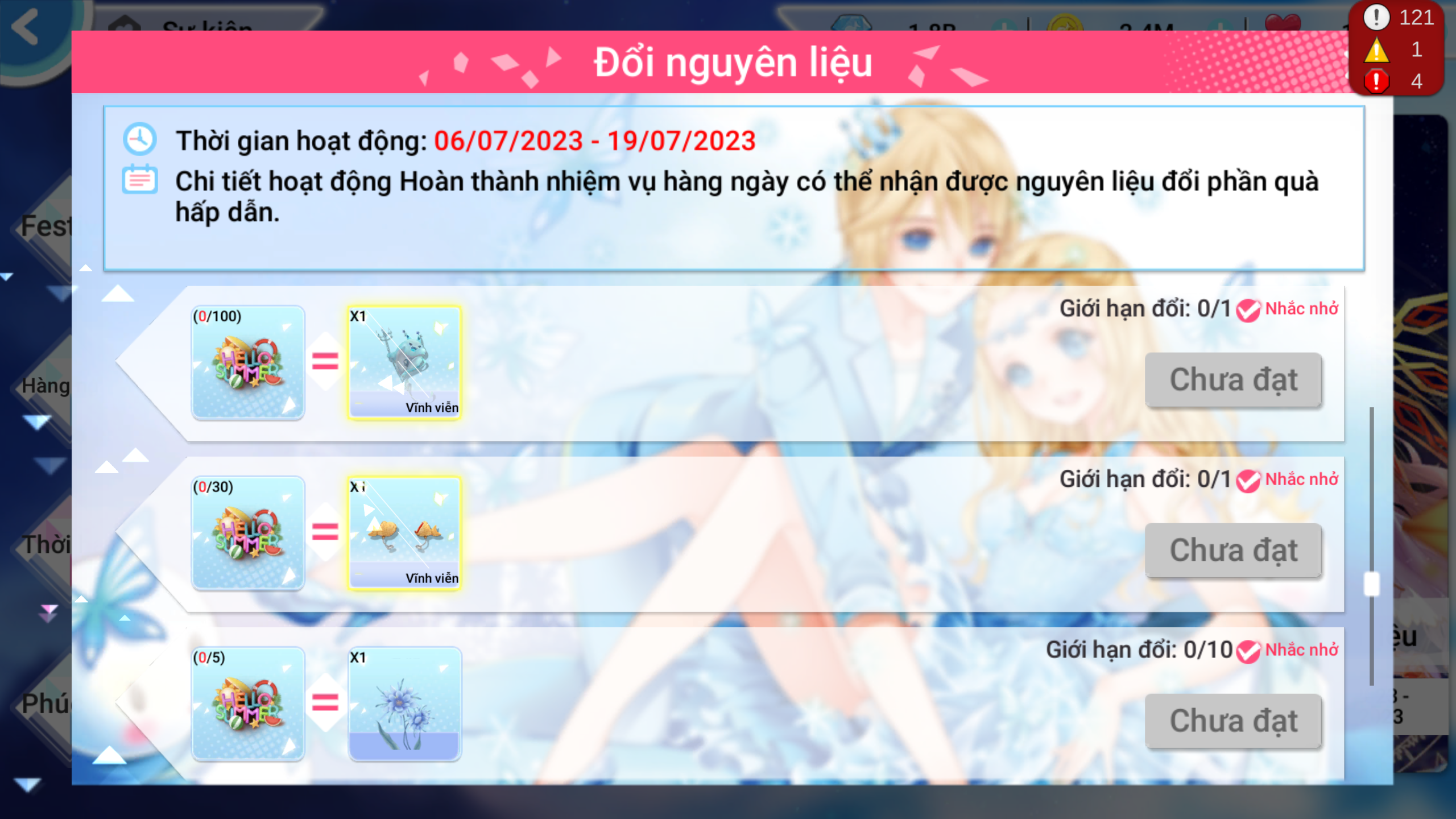 THỂ LỆ: Trong thời gian diễn ra sự kiện người chơi tham gia các hoạt động in-game để thu thập nguyên liệu và sử dụng nguyên liệu để đổi các item thưởng có trong sự kiện.