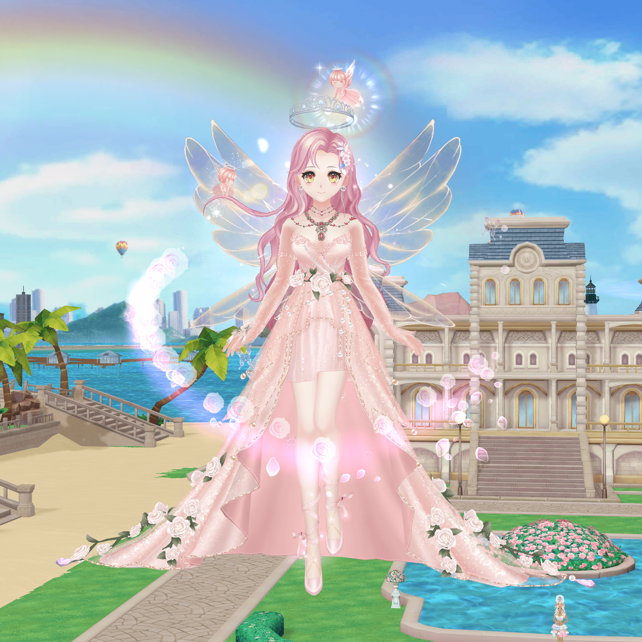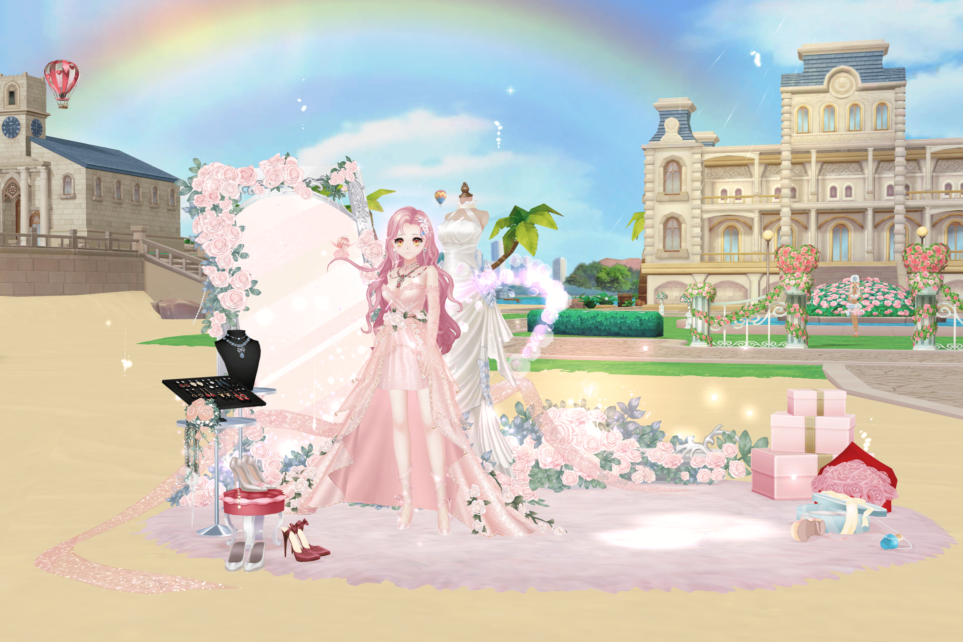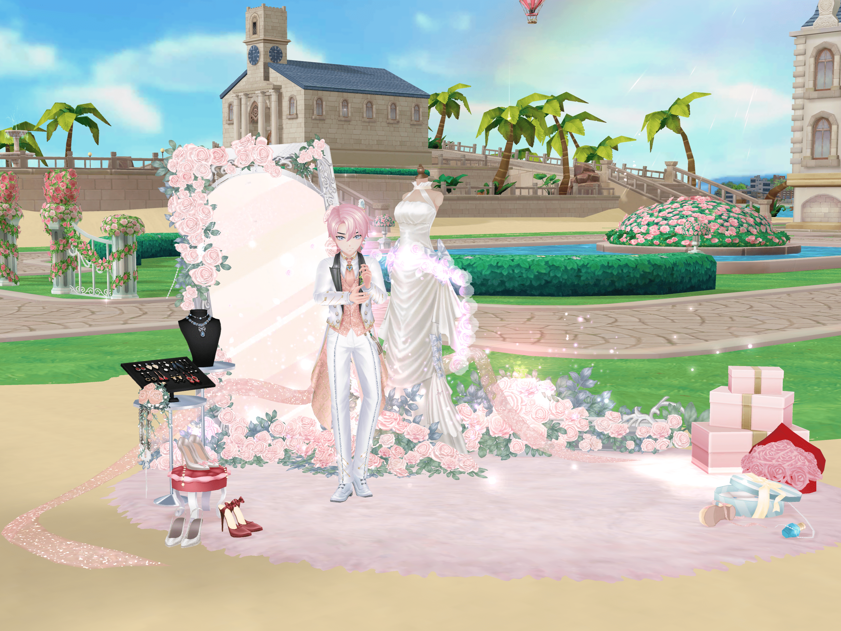 là nghi lễ truyền thống của vương quốc, ai ai cũng háo hức được gặp công chúa và hoàng tử. Để chuẩn bị cho ngày trọng đại này, chàng hoàng tử sẽ khoác trên mình bộ vest chú rể sang trọng với mái tóc hồng nổi bật. Còn nàng công chúa xinh đẹp sẽ mặc một chiếc váy hồng dài, gây ấn tượng bởi hàng trăm bông hoa, được đính kế khéo léo t ở phần eo và đuôi váy.