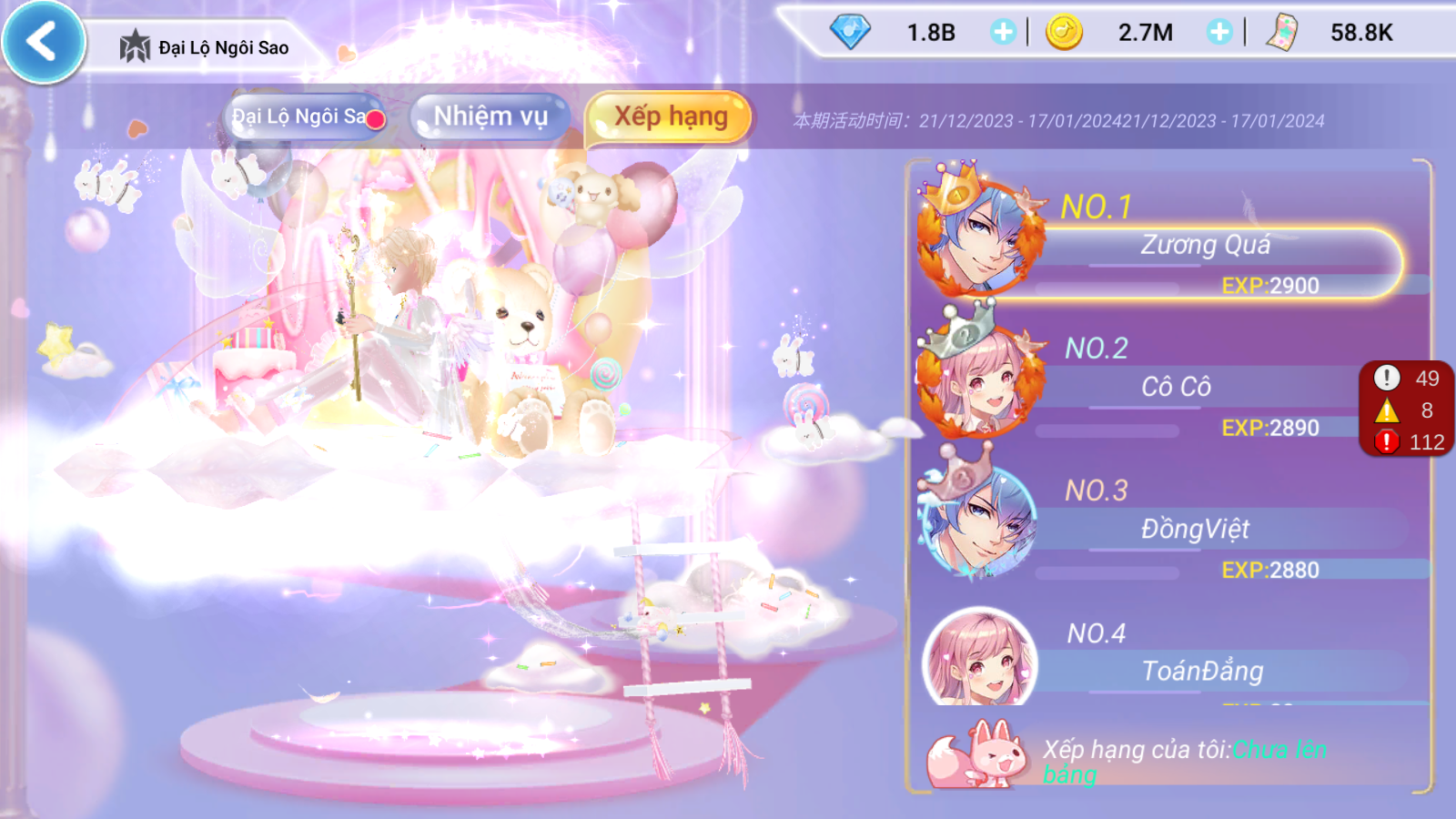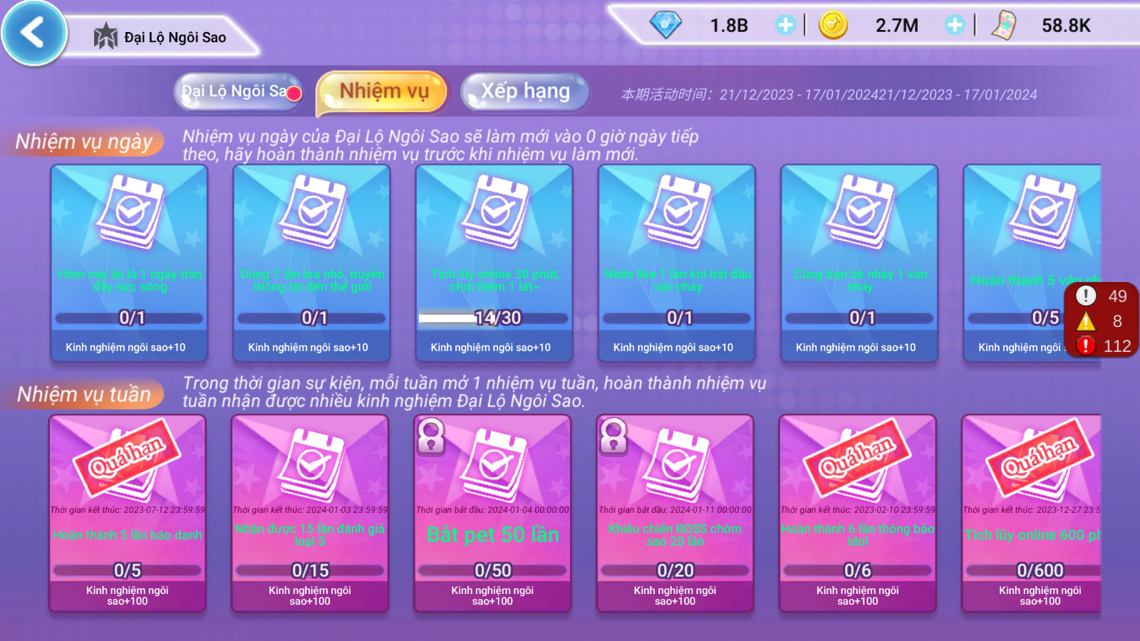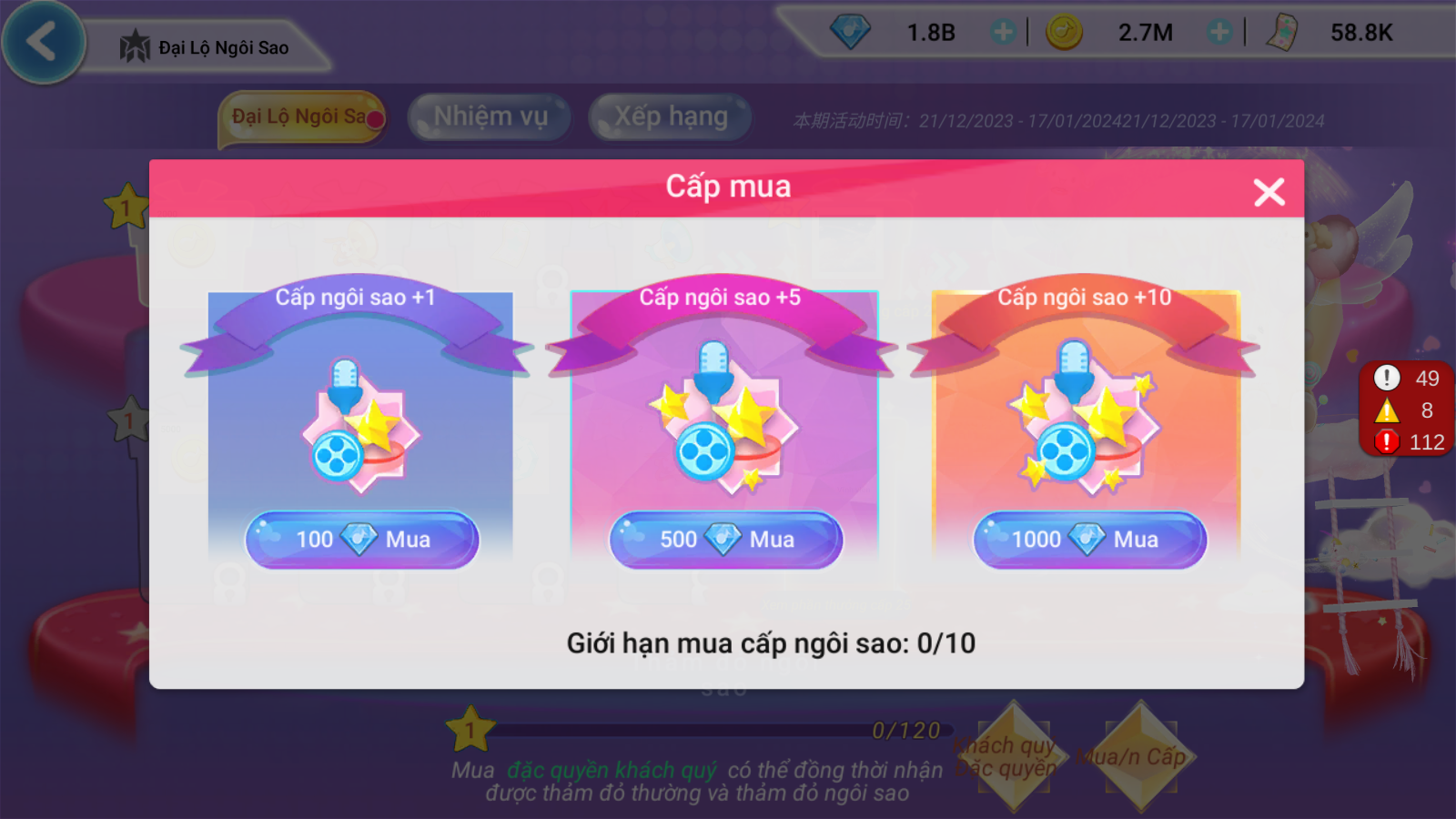 Để rút gọn thời gian hoàn thành nhiệm vụ, các vũ công có thể lựa chọn Mua Cấp Ngôi Sao bằng Kim Cương và nhận quà xịn.