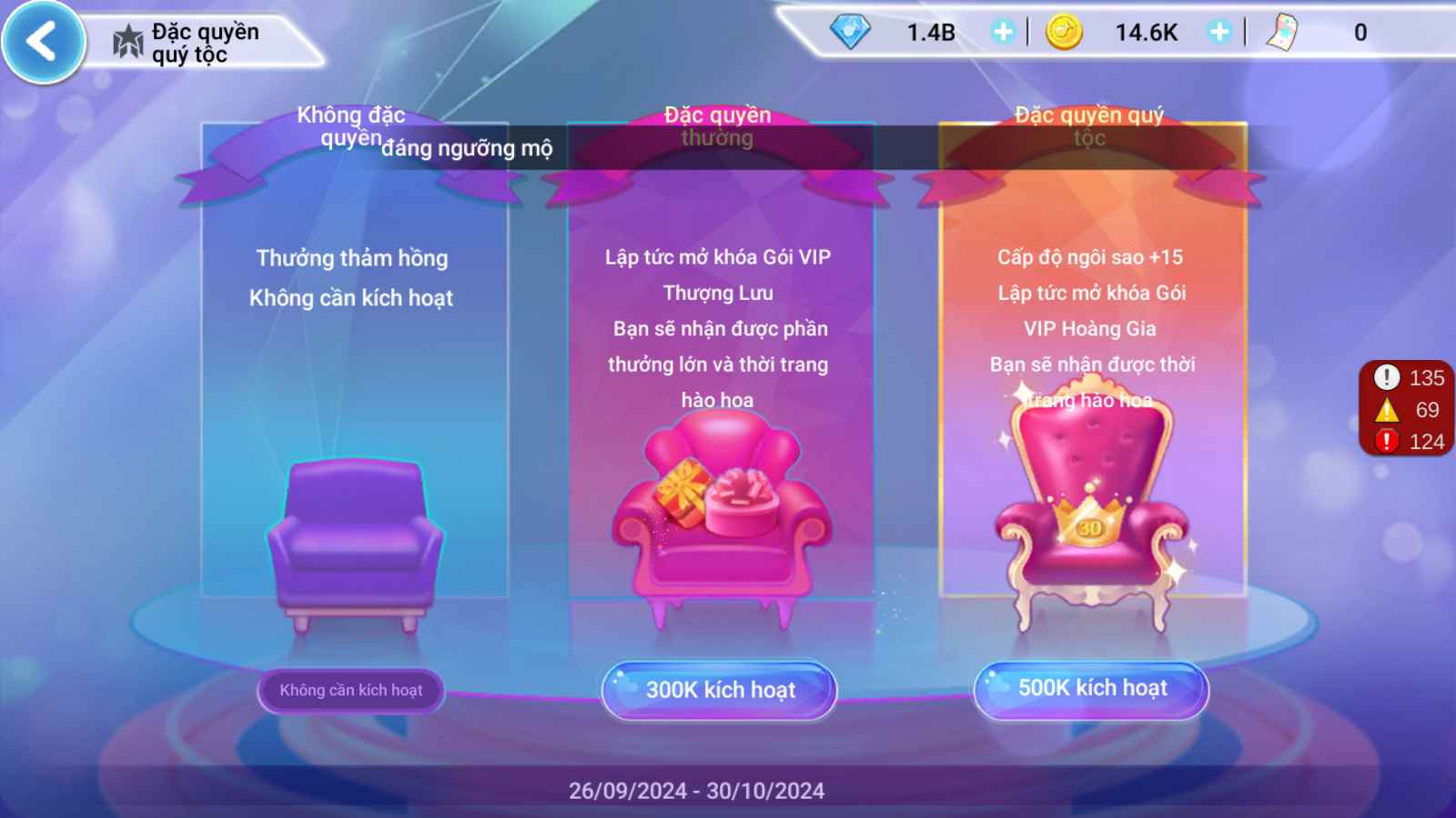 - Gói VIP Thượng Lưu: Lập tức mở khóa phần thưởng thảm đỏ ngôi sao.