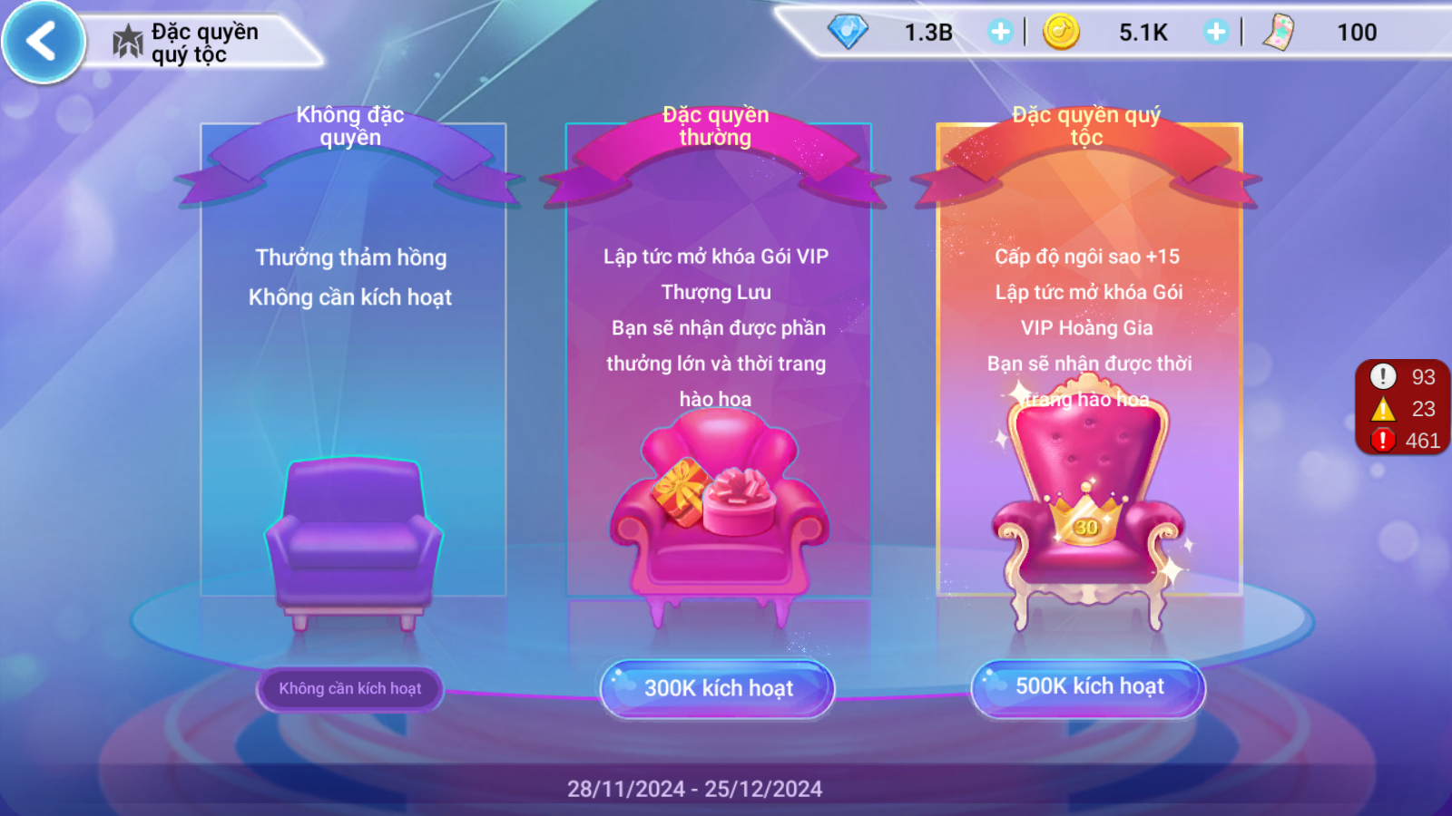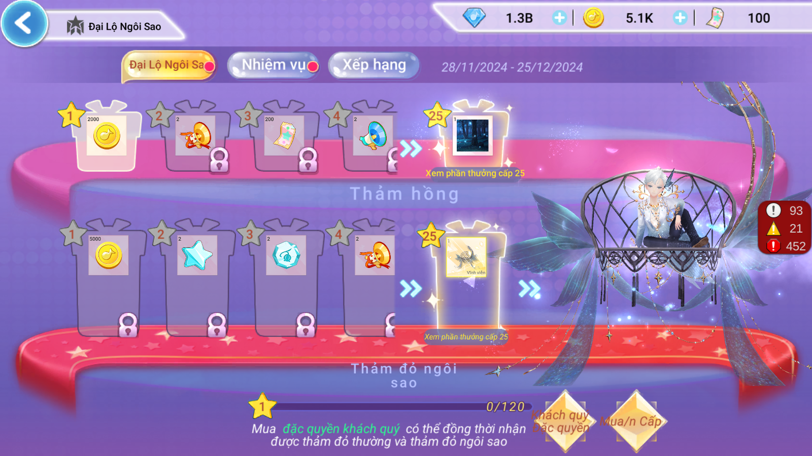- Gói VIP Thượng Lưu: Lập tức mở khóa phần thưởng thảm đỏ ngôi sao.