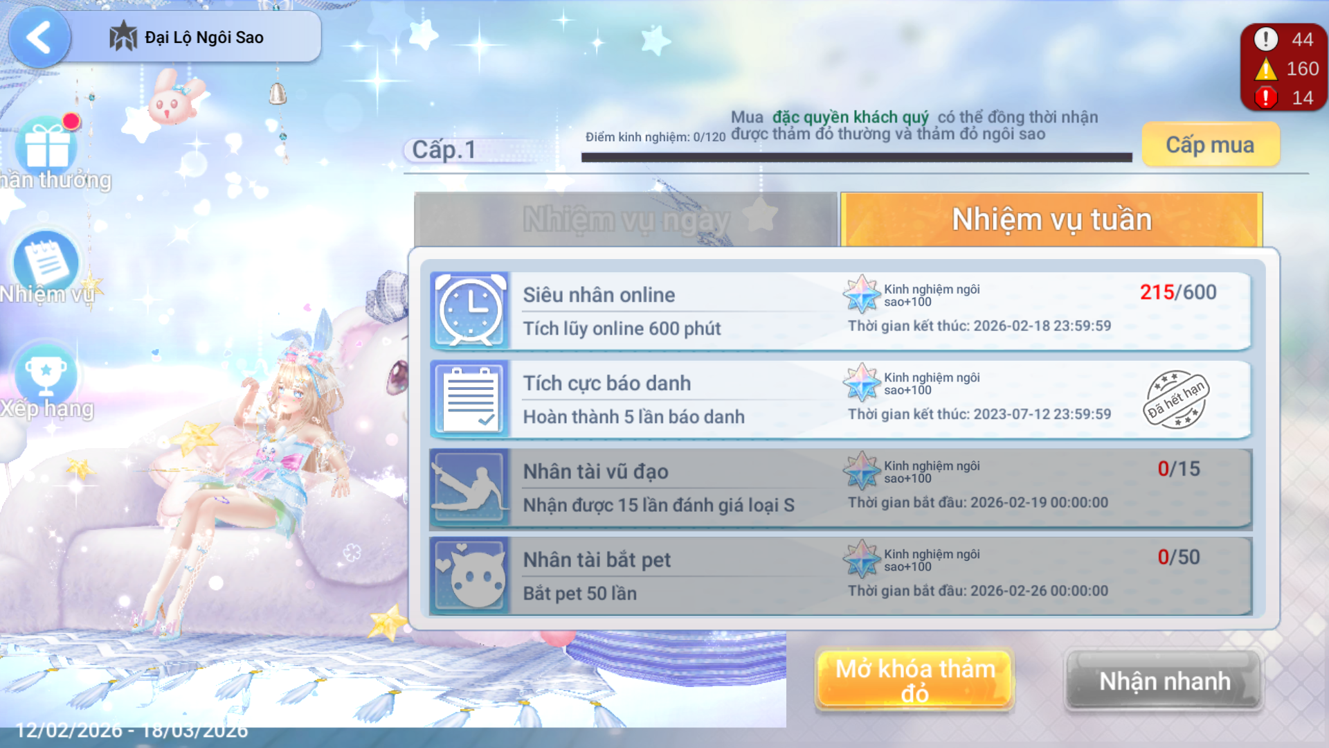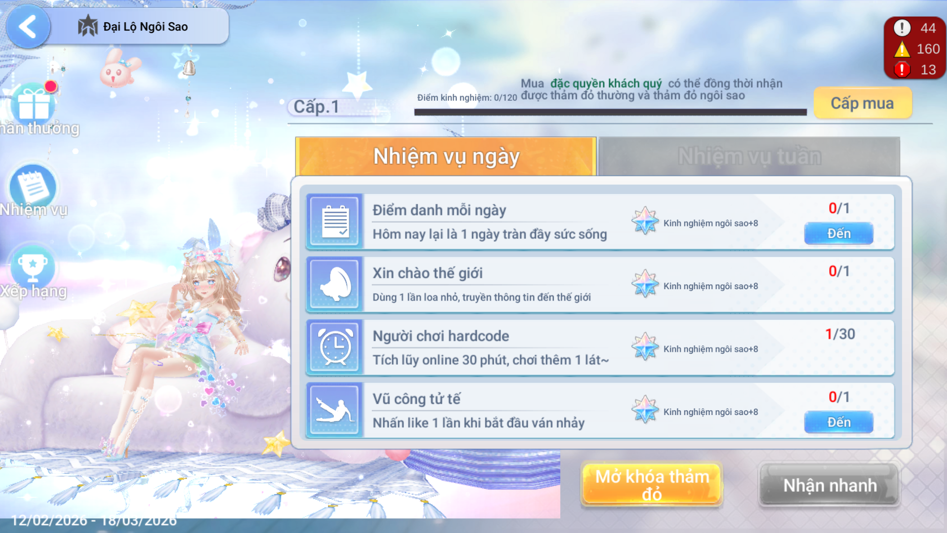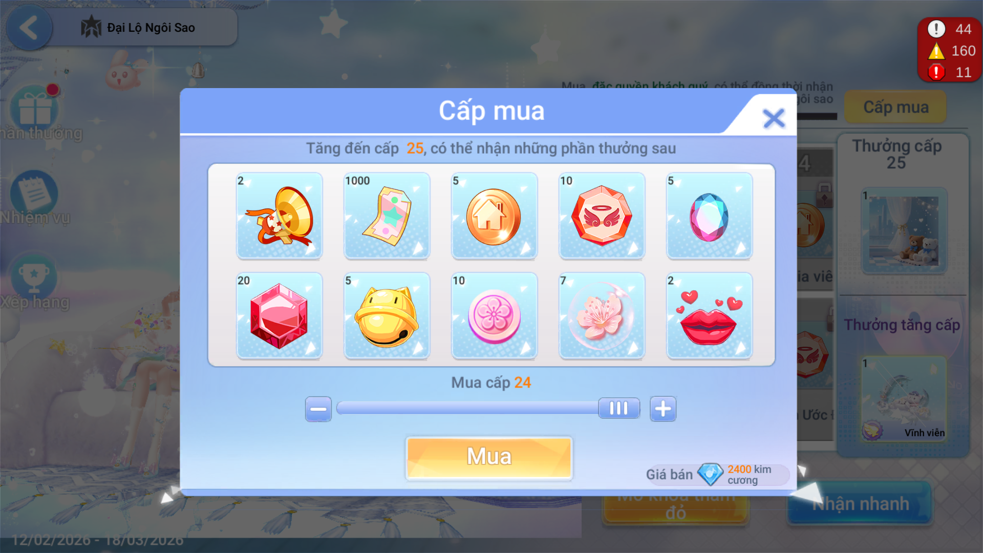 Để rút gọn thời gian hoàn thành nhiệm vụ, các vũ công có thể lựa chọn Mua Cấp Ngôi Sao bằng Kim Cương và nhận quà xịn.