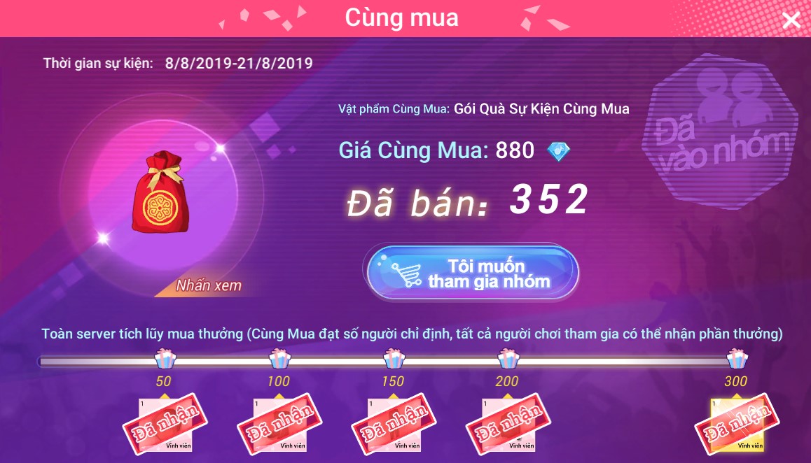 Khi cùng mua đạt số lượng chỉ định, toàn bộ người đã mua gói sẽ nhận quà tặng tương ứng.