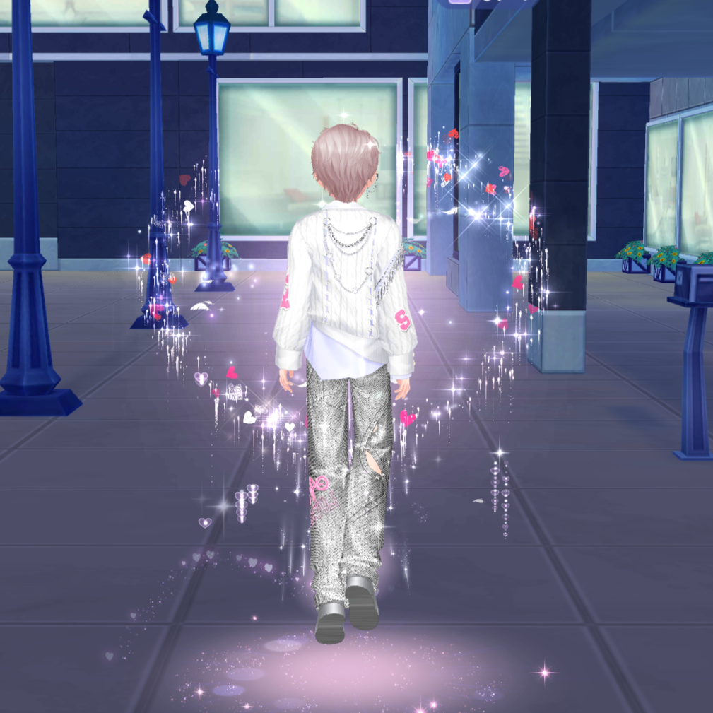 Bộ trang phục chủ đạo gây ấn tượng với phong cách thời trang "giấu quần" và áo choàng hờ hững đầy quyến rũ. Với tông màu trắng tinh khôi làm chủ đạo, phiên bản nữ là sự kết hợp giữa nét kiêu sa của chiếc váy lụa ôm sát và sự mềm mại của dải lông vũ choàng qua vai. Trong khi đó, phiên bản nam lại toát lên vẻ lãng tử với chiếc áo sơ mi cách điệu thắt nơ hờ, kết hợp cùng quần sành điệu có họa tiết trái tim hồng nổi bật ở gấu quần. Cả hai set đồ đều mang lại cảm giác vừa thoải mái, vừa thời thượng, cực kỳ phù hợp cho những buổi hẹn hò lãng mạn.