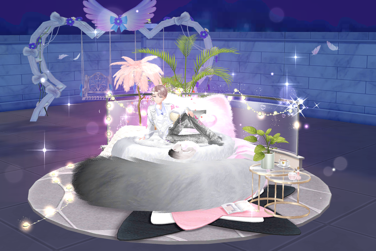 Vật phẩm "trùm cuối" của sự kiện chính là chiếc Ngai Uyên Ương Son Sắt sang trọng bậc nhất. Đây là một tổ hợp trang trí nội thất đẳng cấp với chiếc sofa tròn khổng lồ lót lông trắng mịn, điểm xuyết thêm những chiếc gối tựa hình trái tim và ngôi sao. Không gian xung quanh ngai được trang trí bằng cây xanh, đèn dây lung linh và một chiếc đèn đứng hình lông vũ màu hồng điệu đà. Ngồi trên chiếc ngai này, bạn và người thương sẽ như đang tận hưởng những giây phút yên bình nhất trong căn penthouse mơ ước của mình.
