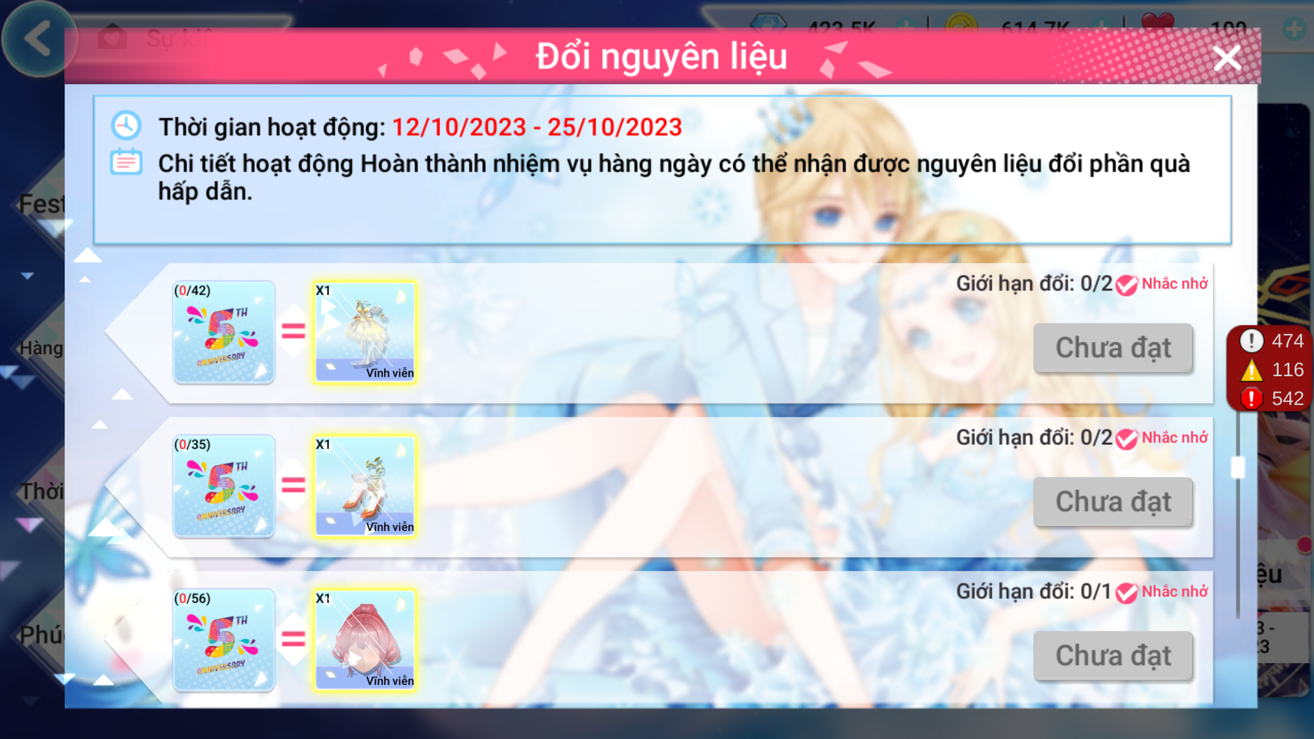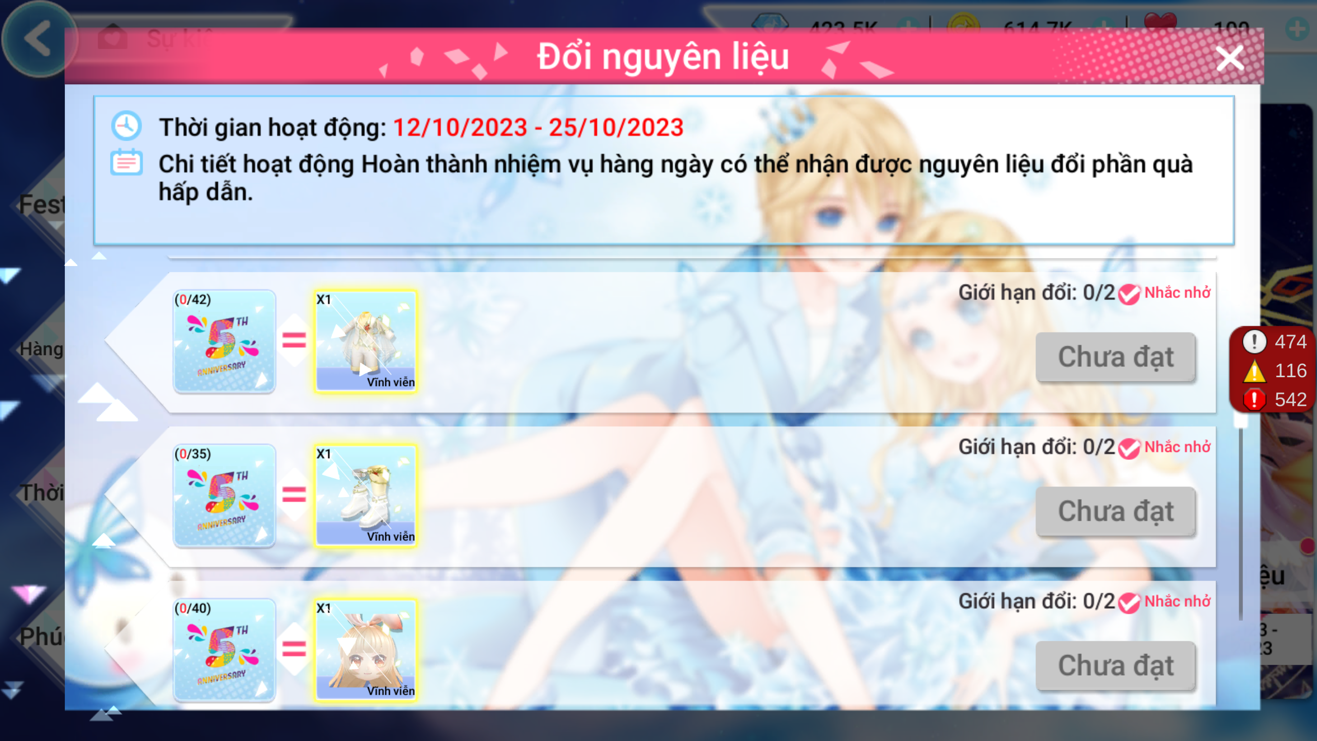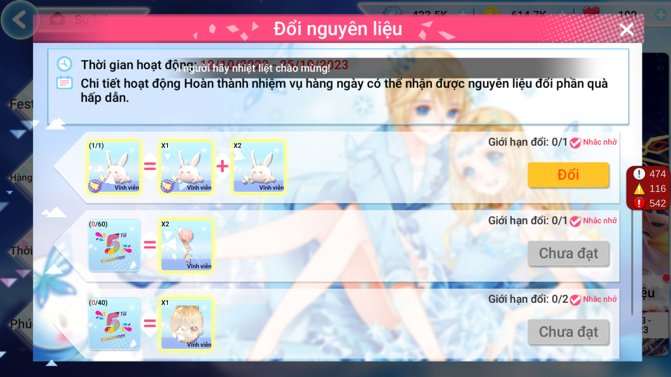 Mừng sinh nhật, Au 2 chiêu đãi các vũ công kho quà cho cả gia đình qua sự kiện ĐỔI NGUYÊN LIỆU cực hot. Chỉ cần thu thập đủ số lượng nguyên liệu, các vũ công sẽ có cơ hội rinh ngay những món quà siêu cấp đáng yêu đó nha. Tìm hiểu ngay nhé!