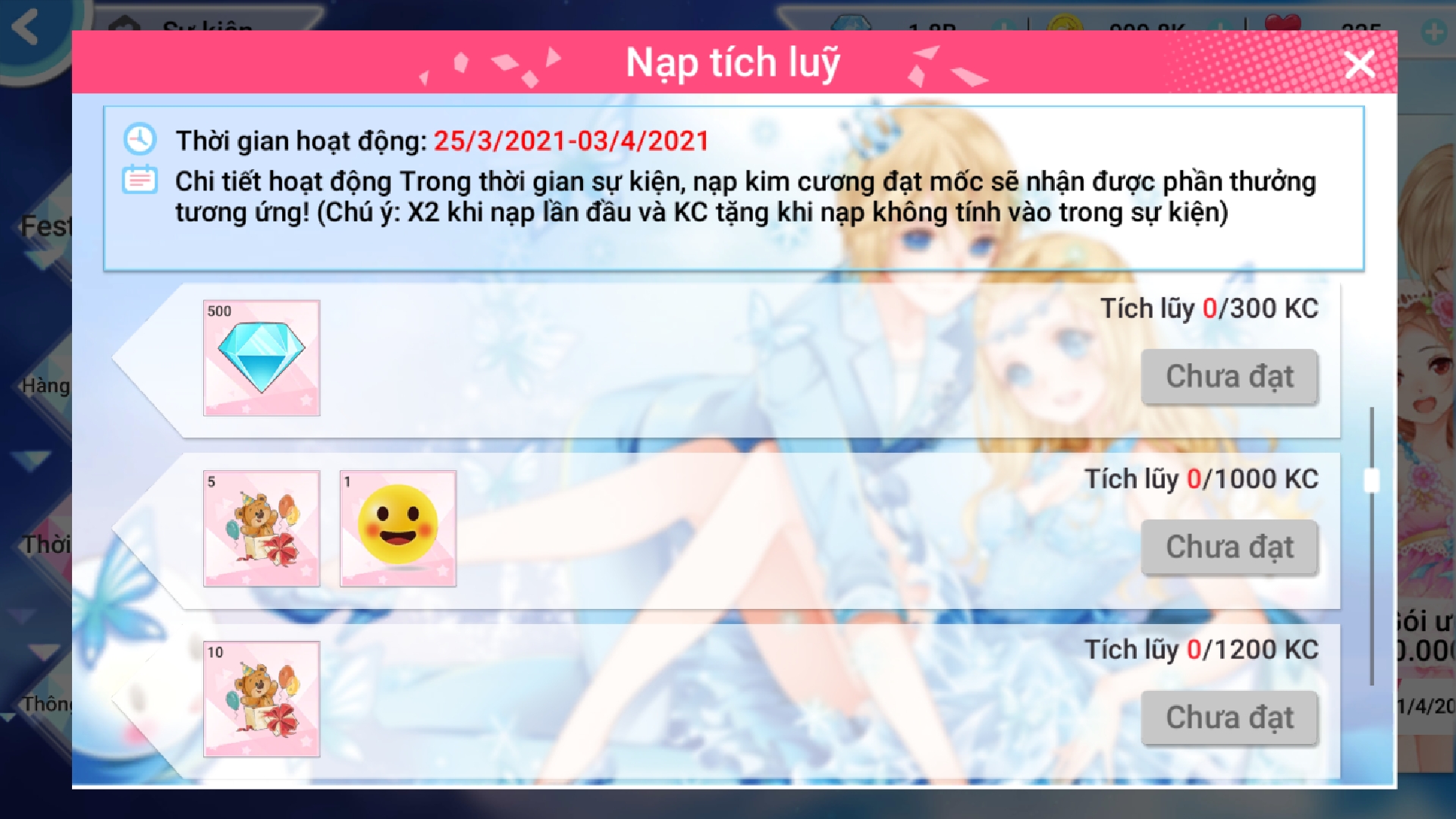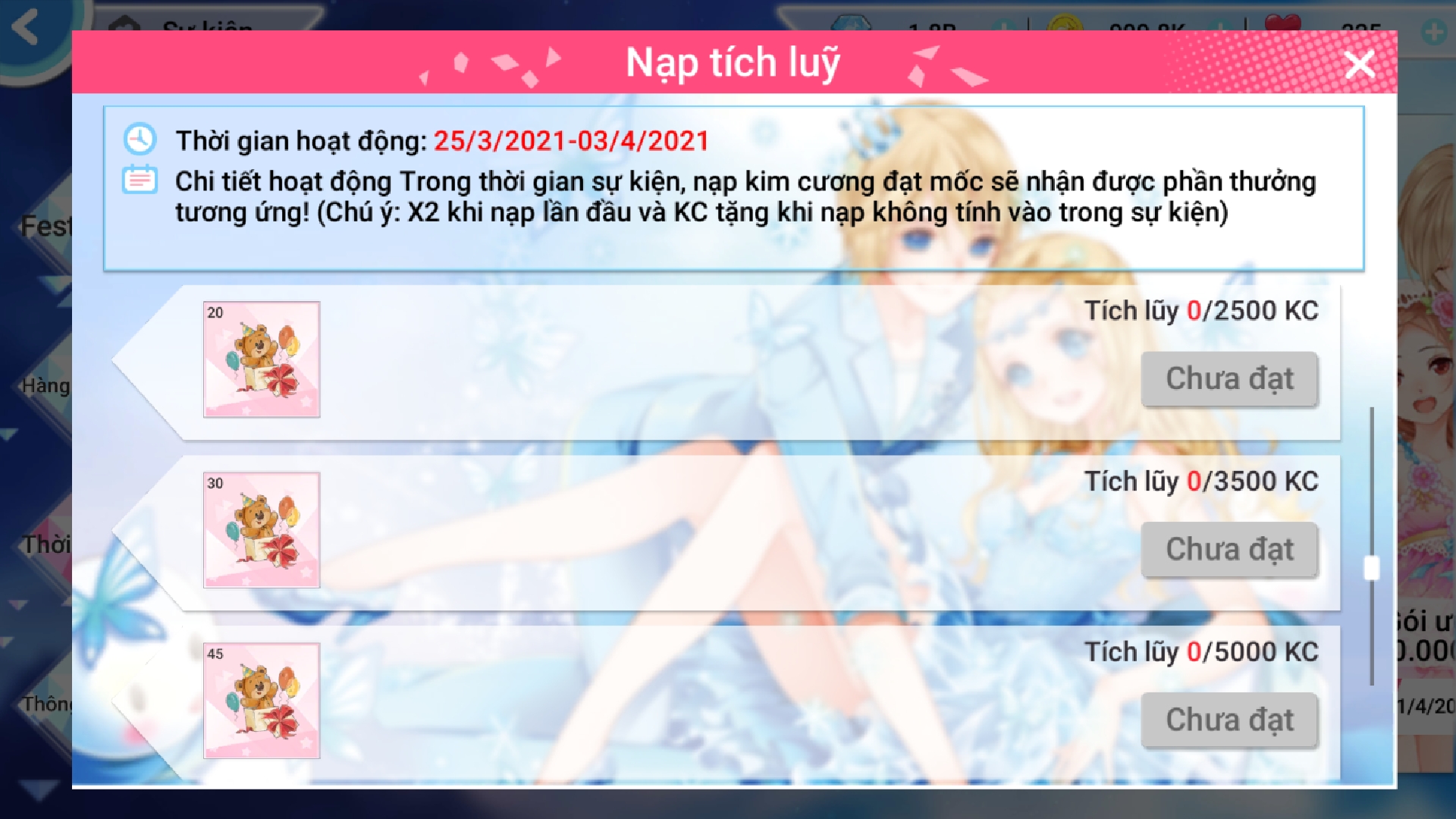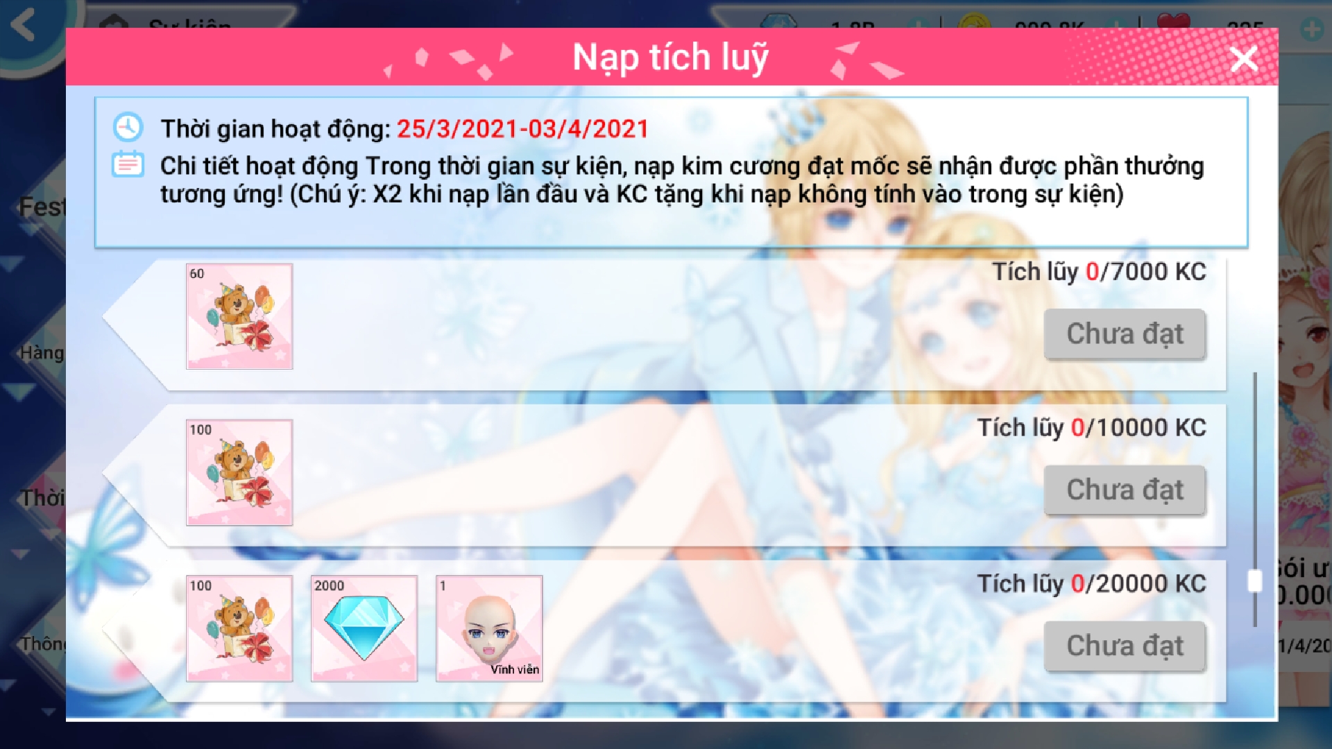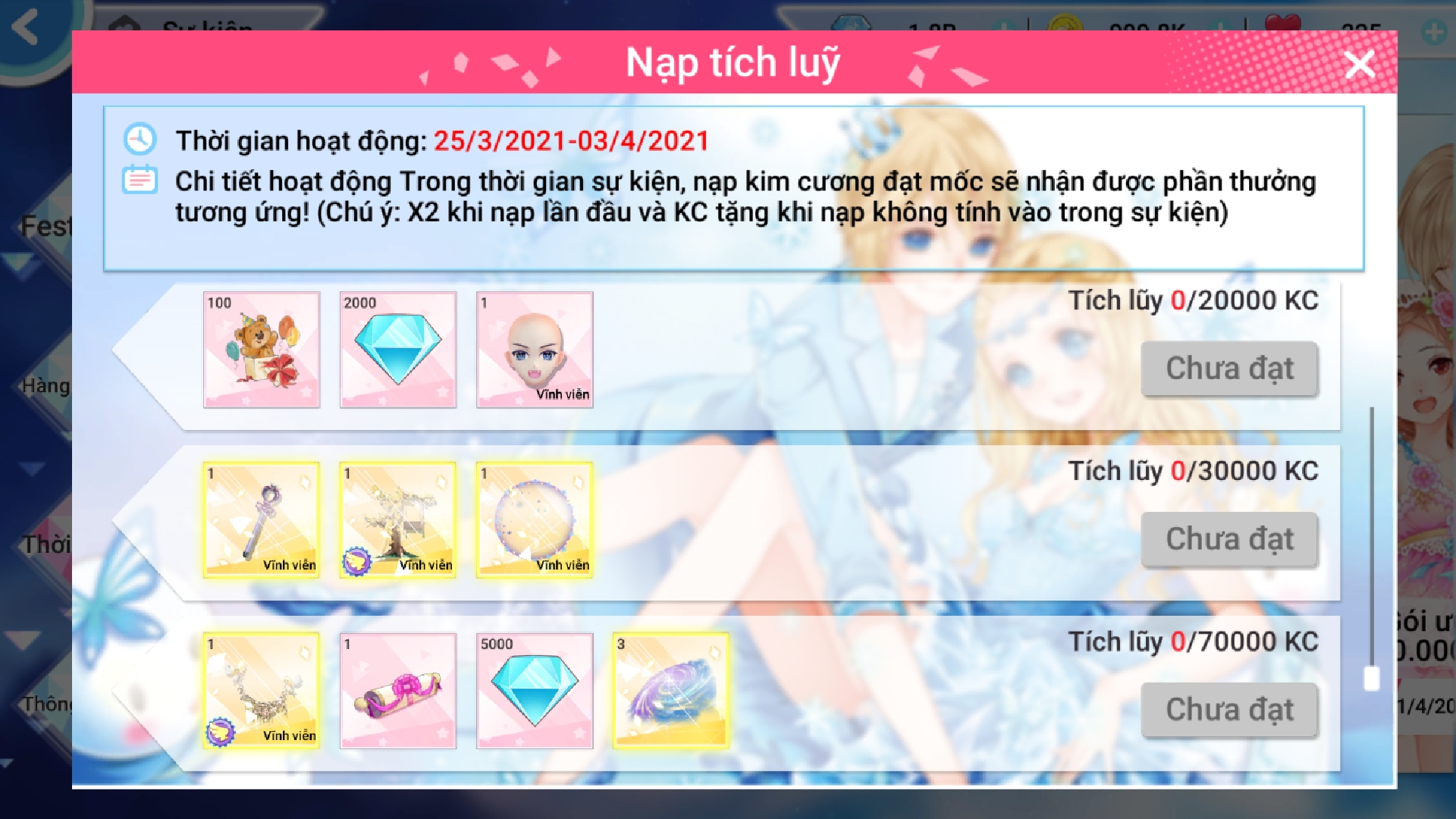 THỂ LỆ: Người chơi tích lũy nạp trong thời gian diễn ra sự kiện, khi đạt mốc nhận thưởng tương ứng.
