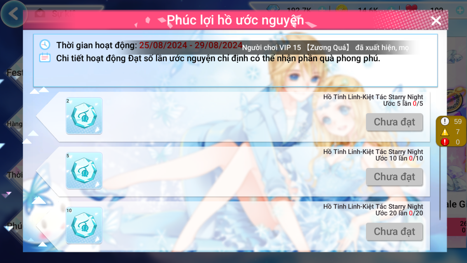 icon-dong-hungole-blog (190) THỂ LỆ: Trong thời gian diễn ra sự kiện, người chơi cầu nguyện ở hồ ước nguyện tinh linh chỉ định đủ số lượt quy định sẽ nhận được phần thưởng tương ứng.