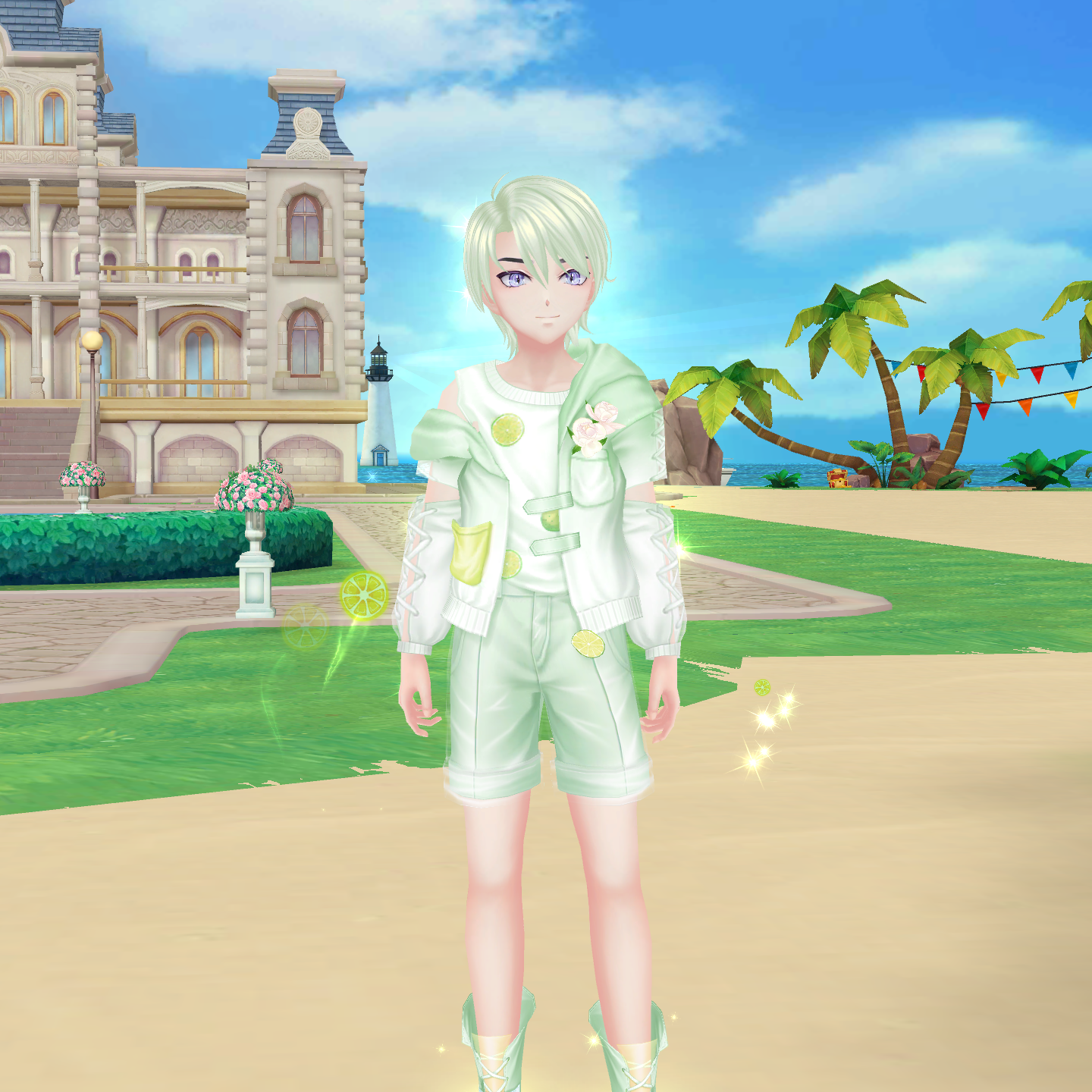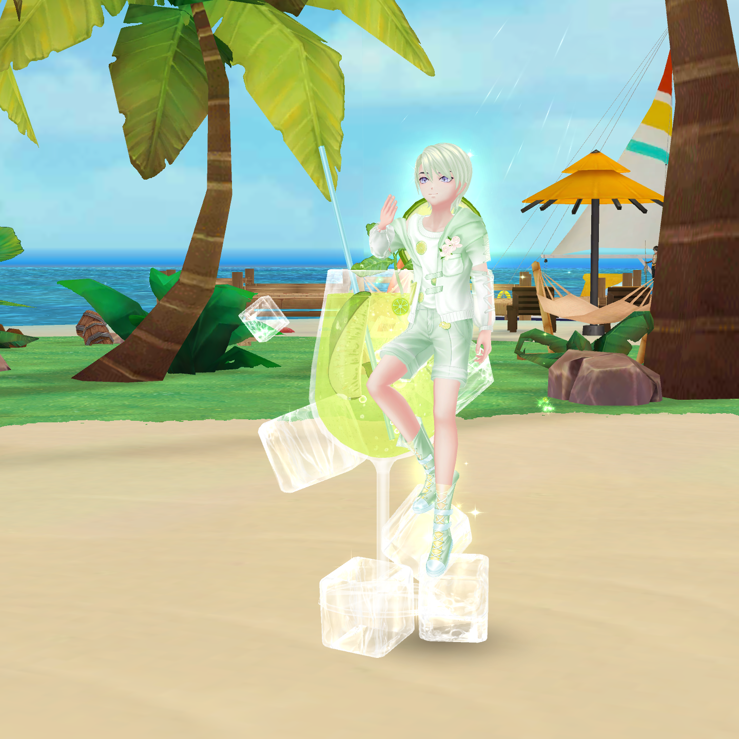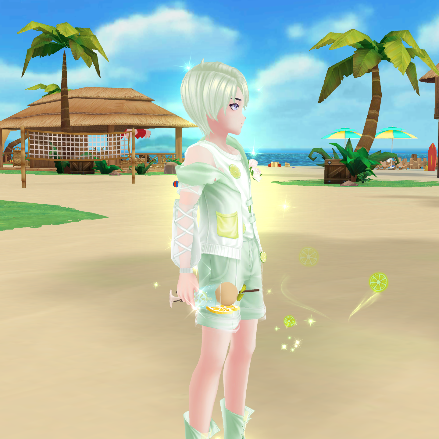 mát lạnh, bộ trang phục của nhân viên được thiết kế theo phong cách mùa hè tươi sáng. Không chỉ sở hữu mái tóc xanh làm điểm nhấn, set trang phục của họ còn có nhiều chi tiết độc đáo như hình ảnh những lát chanh tươi mát, những bông hoa được điểm xuyết khéo léo.