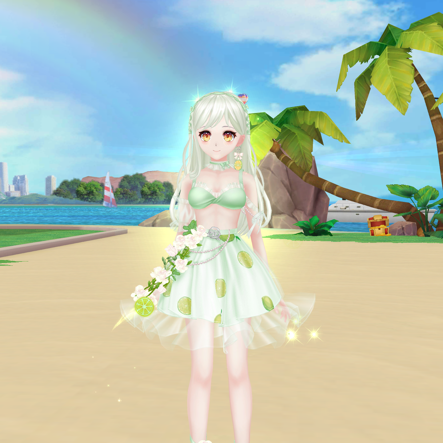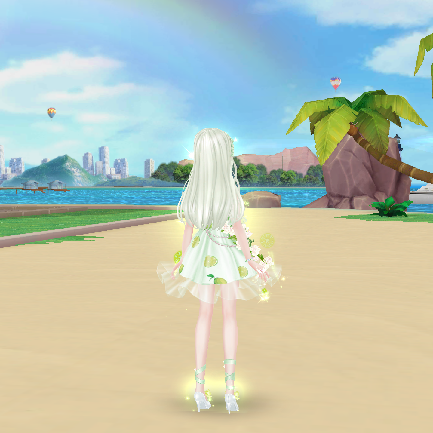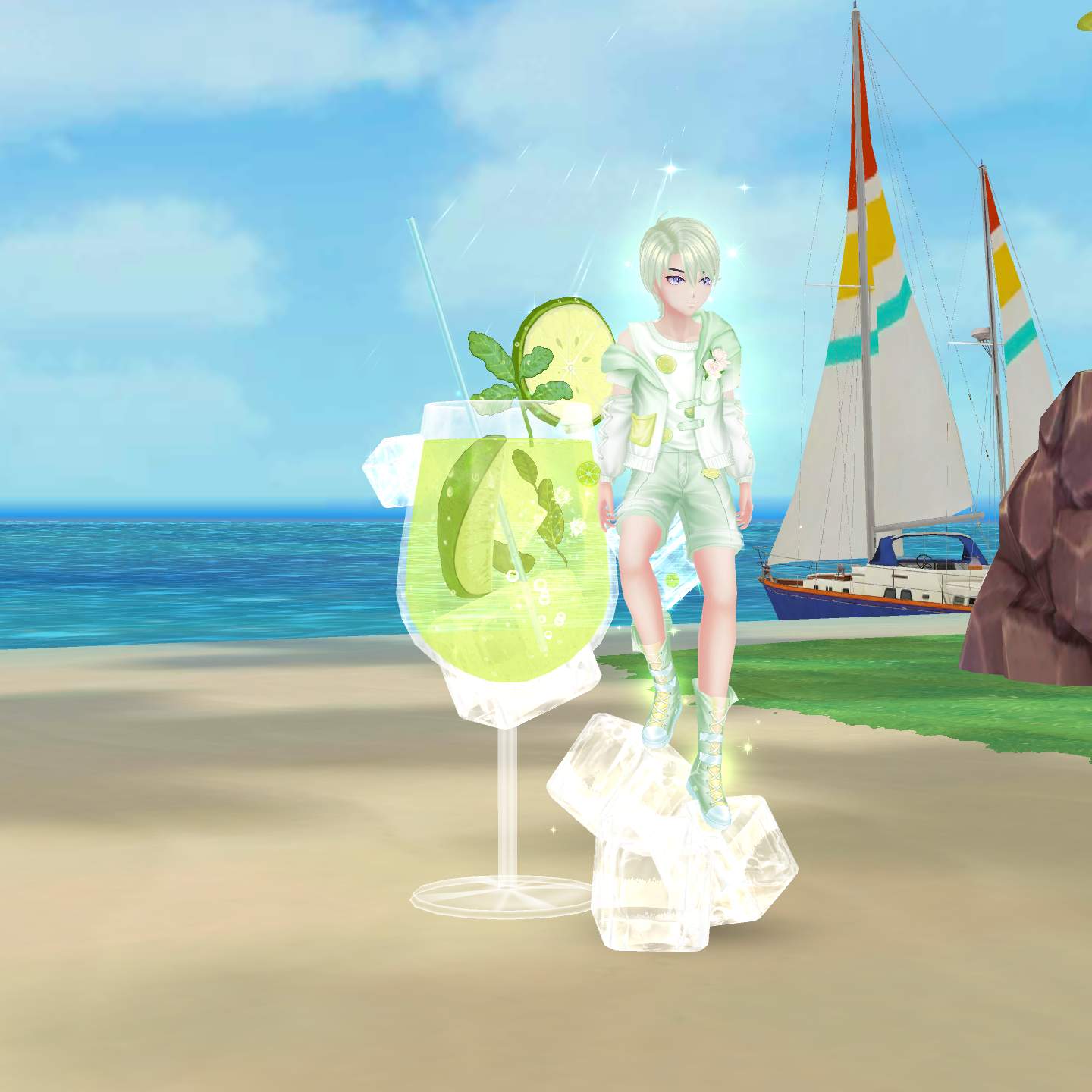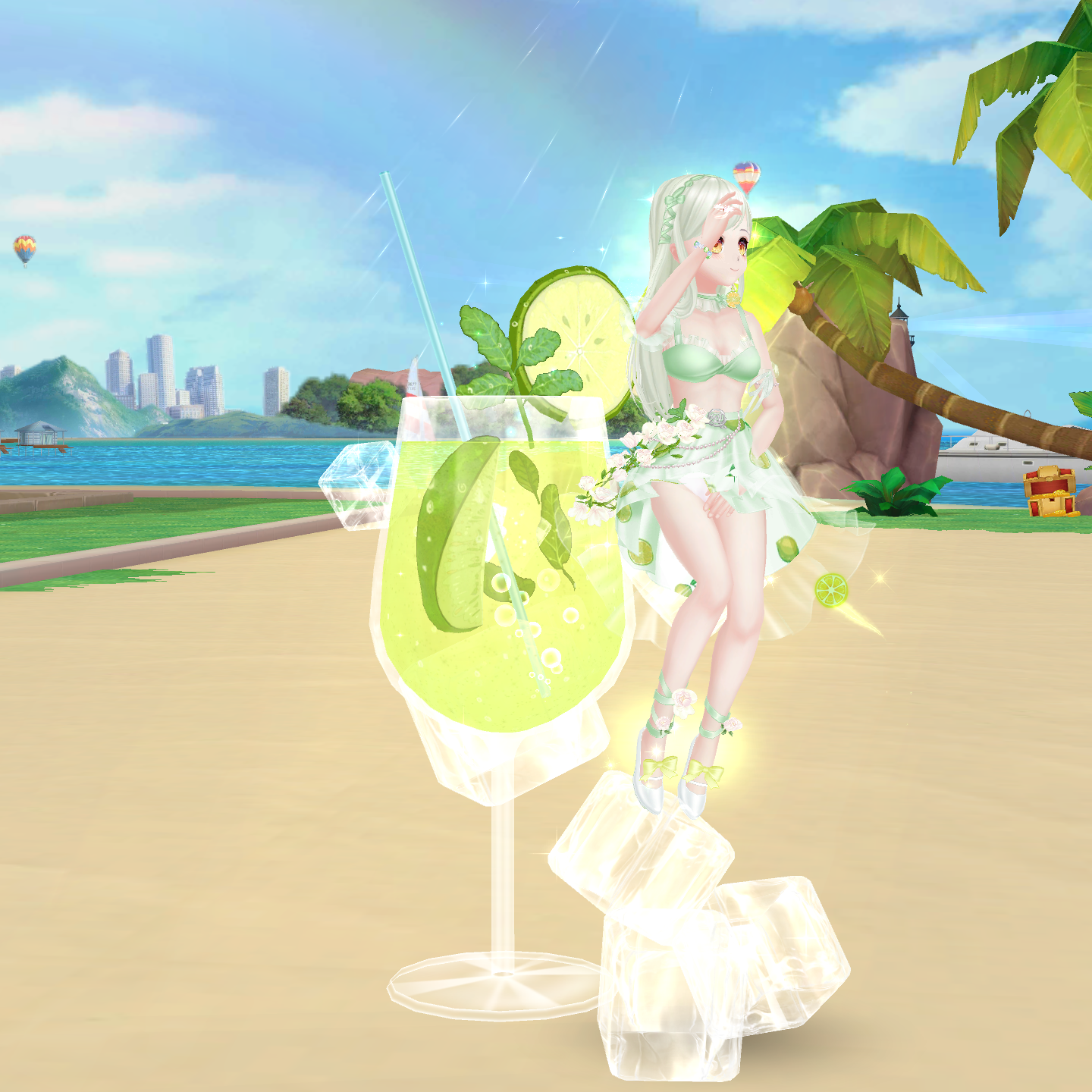 mát lạnh, bộ trang phục của nhân viên được thiết kế theo phong cách mùa hè tươi sáng. Không chỉ sở hữu mái tóc xanh làm điểm nhấn, set trang phục của họ còn có nhiều chi tiết độc đáo như hình ảnh những lát chanh tươi mát, những bông hoa được điểm xuyết khéo léo.