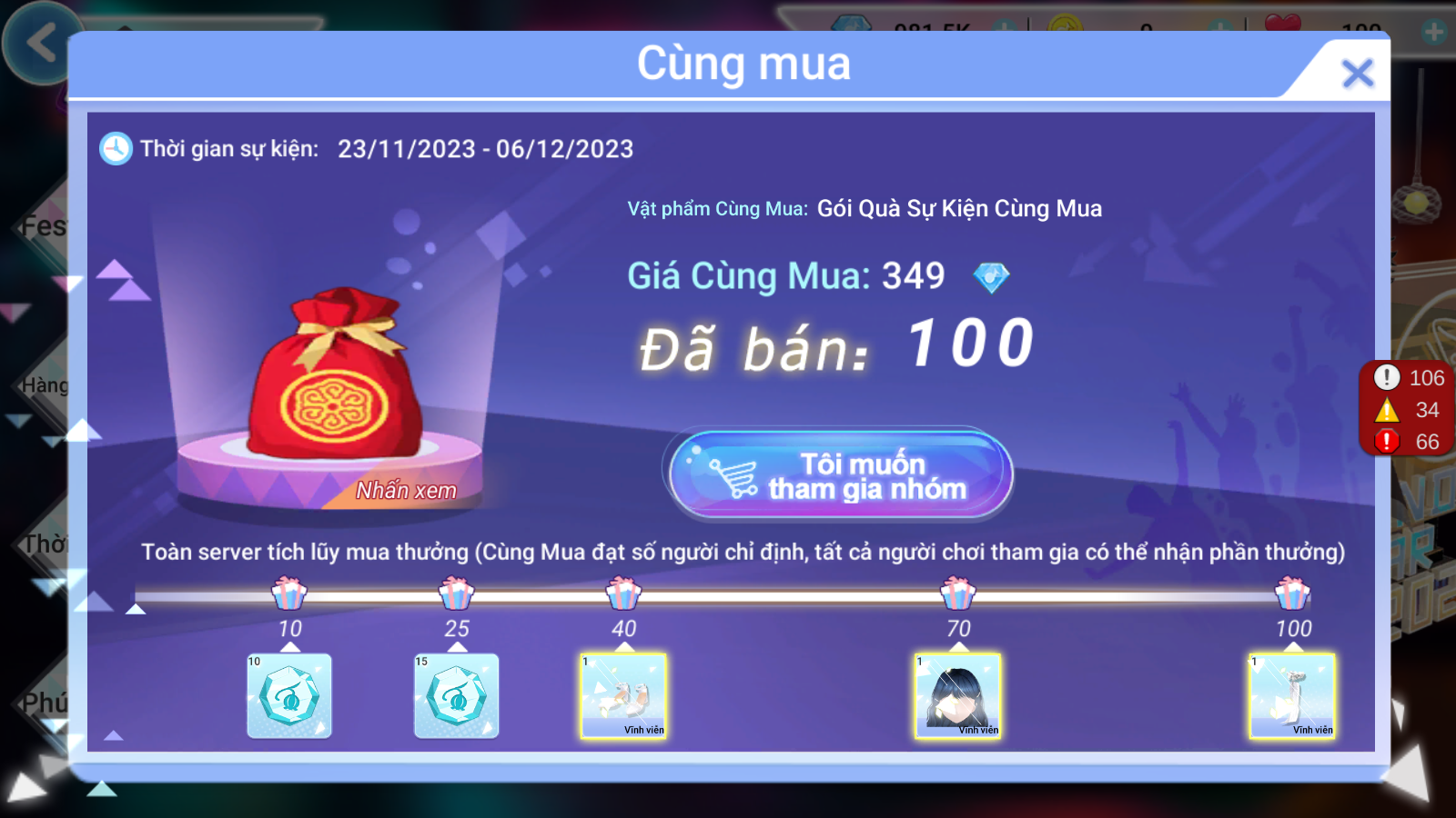 Mốc cùng mua 100 gói quà sự kiện: 01 Bộ Giai Điệu Ngọc Trai ( Vĩnh Viễn)