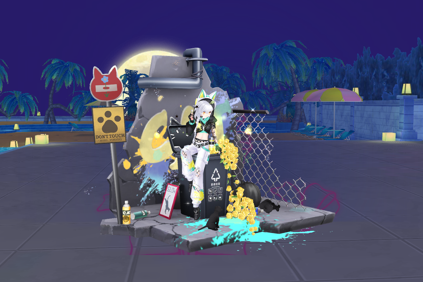 NGAI BANG HỘI MÈO HOANG: Một góc phố phong cách đường phố, nơi những chú mèo hoang tụ tập. Với thiết kế ấn tượng từ thùng rác, lưới sắt và graffiti nghệ thuật, ngai sẽ là điểm nhấn không thể bỏ qua!