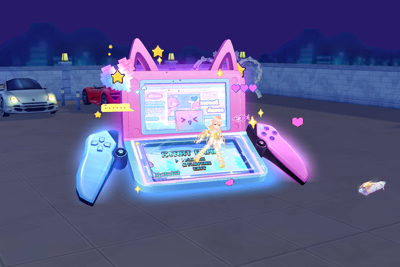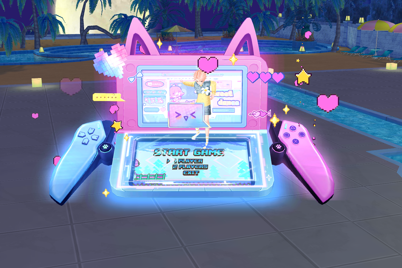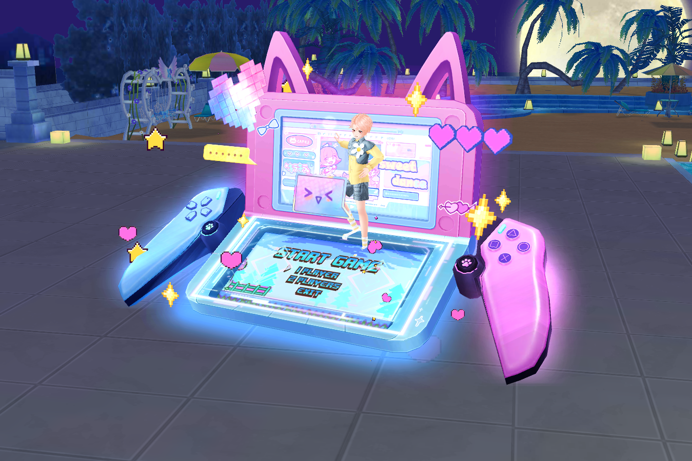 lấy cảm hứng từ máy game cầm tay, kết hợp tai mèo phát sáng và hiệu ứng trái tim bay lơ lửng. Một item không thể thiếu cho các game thủ chính hiệu!