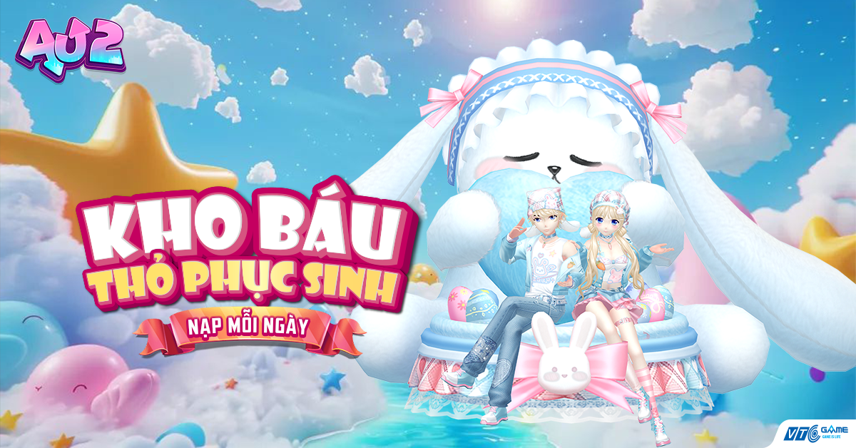 Mùa lễ Phục Sinh đã đến mang theo biết bao điều kỳ diệu và dễ thương! Cùng tham gia sự kiện NẠP MỖI NGÀY để sở hữu trọn bộ item siêu xinh trong chủ đề Kho Báu Thỏ Phục Sinh – nơi quy tụ những thiết kế ngọt ngào, thanh lịch và đầy chất mộng mơ dành cho các vũ công yêu quý của Au 2 nhé!
