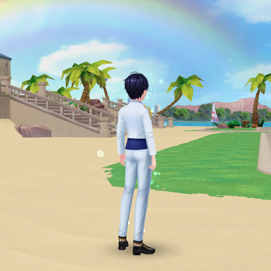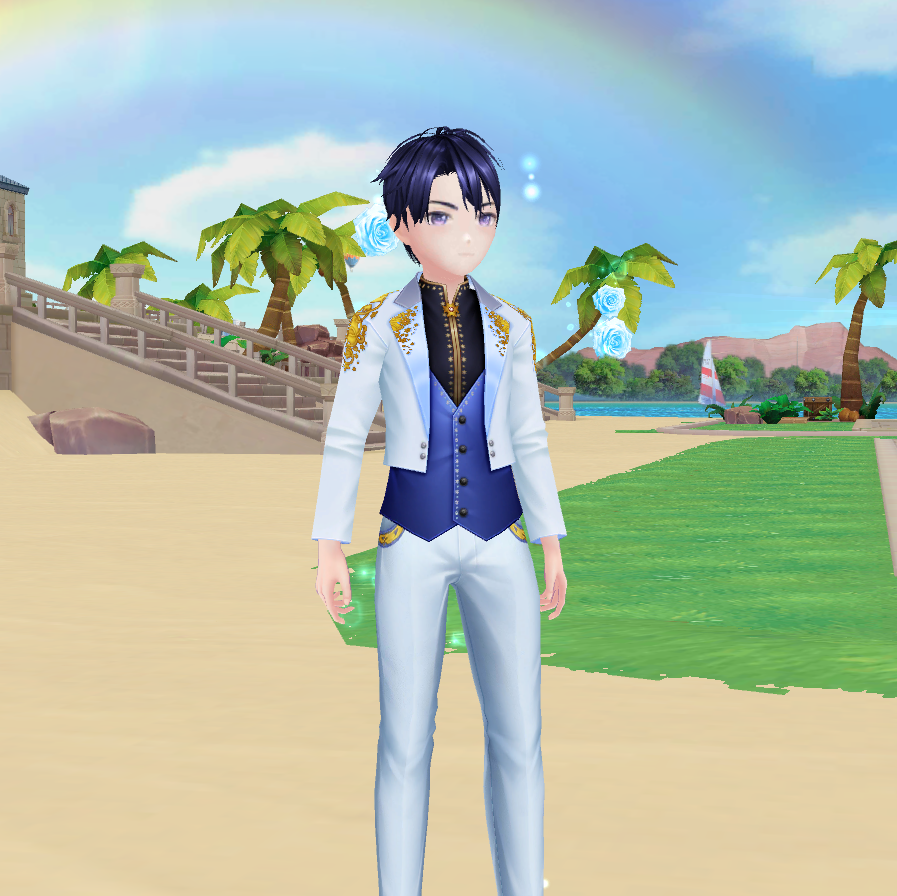 Vũ công nam lên đồ cùng vest xanh lam phối trắng thanh lịch, với chi tiết vàng đồng làm điểm nhấn, mang đến vẻ ngoài sang trọng và dịu dàng như chàng hoàng tử bước ra từ giấc mơ.