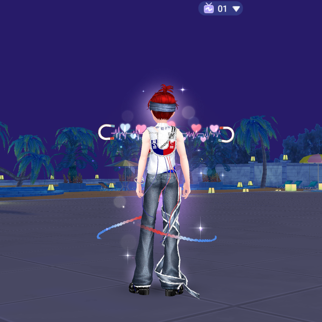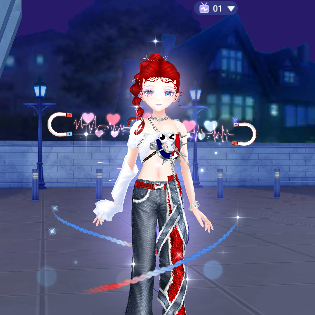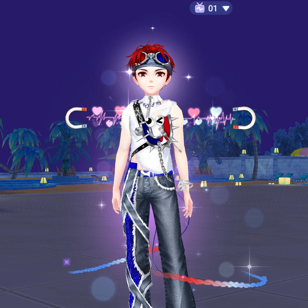 Bộ trang phục này mang phong cách đường phố đầy cá tính. Thiết kế quần jeans rách phá cách kết hợp cùng dây đai, áo khoác không đối xứng, phụ kiện sặc sỡ mang đến vẻ ngoài nổi bật và phá cách. Tone màu xanh – đỏ không chỉ tôn lên phong cách unisex mà còn tạo điểm nhấn đối lập hoàn hảo cho từng nhân vật. Nếu bạn đang tìm kiếm một diện mạo cực “cháy” để khuấy động sàn nhảy, thì đây chính là lựa chọn không thể bỏ lỡ!
