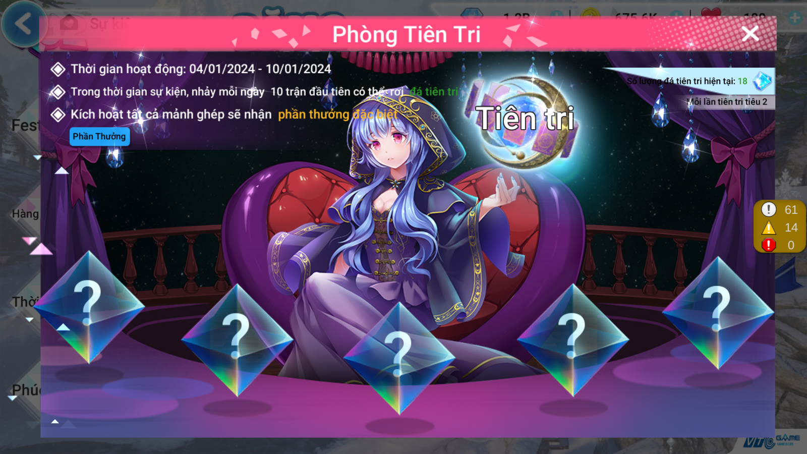 - Trong thời gian sự kiện, nhảy mỗi ngày 10 trận đầu tiên có thể rơi đá tiên tri.