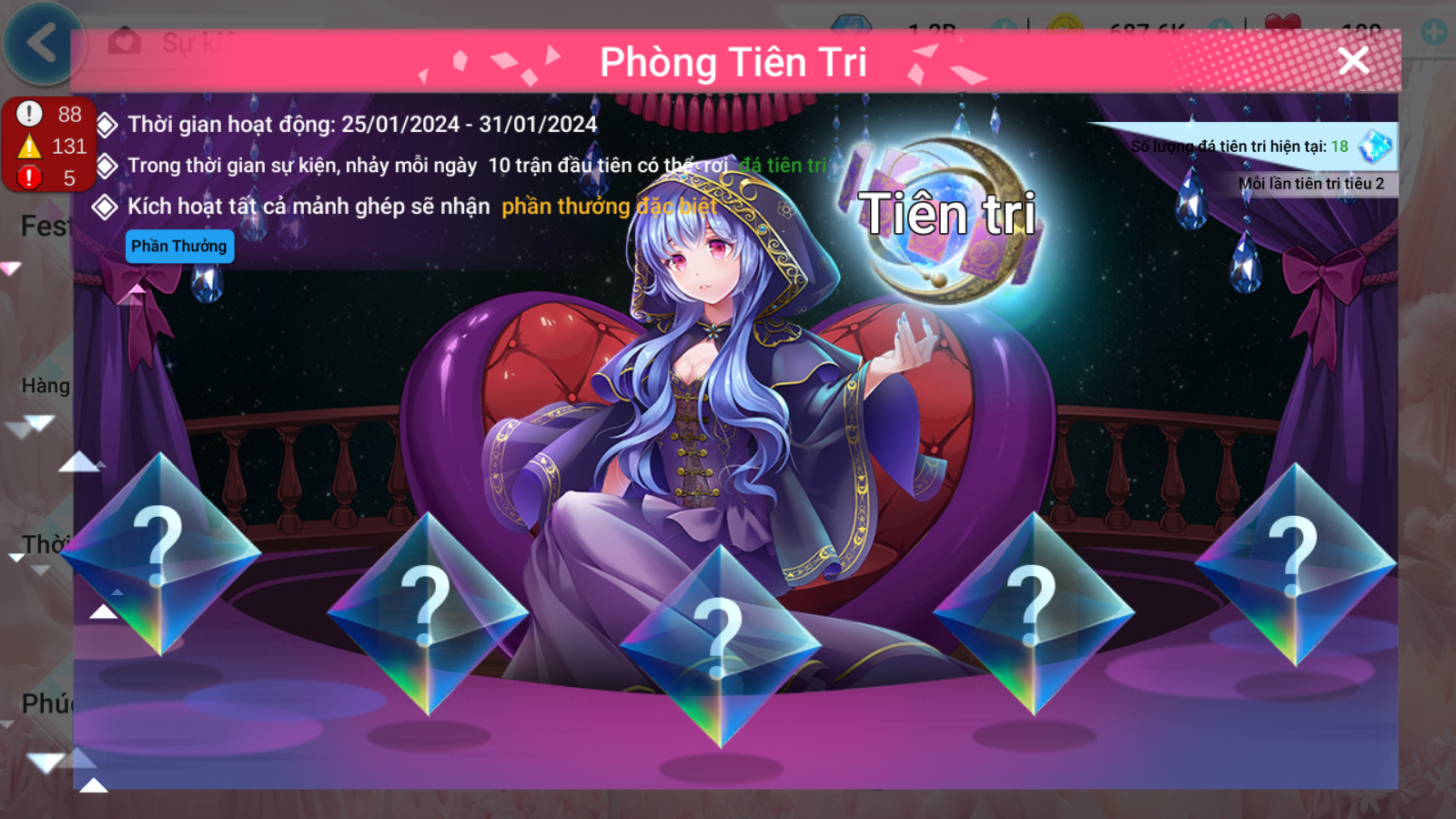 - Mỗi lần kích hoạt mảnh ghép tiêu hao 02 đá tiên tri.