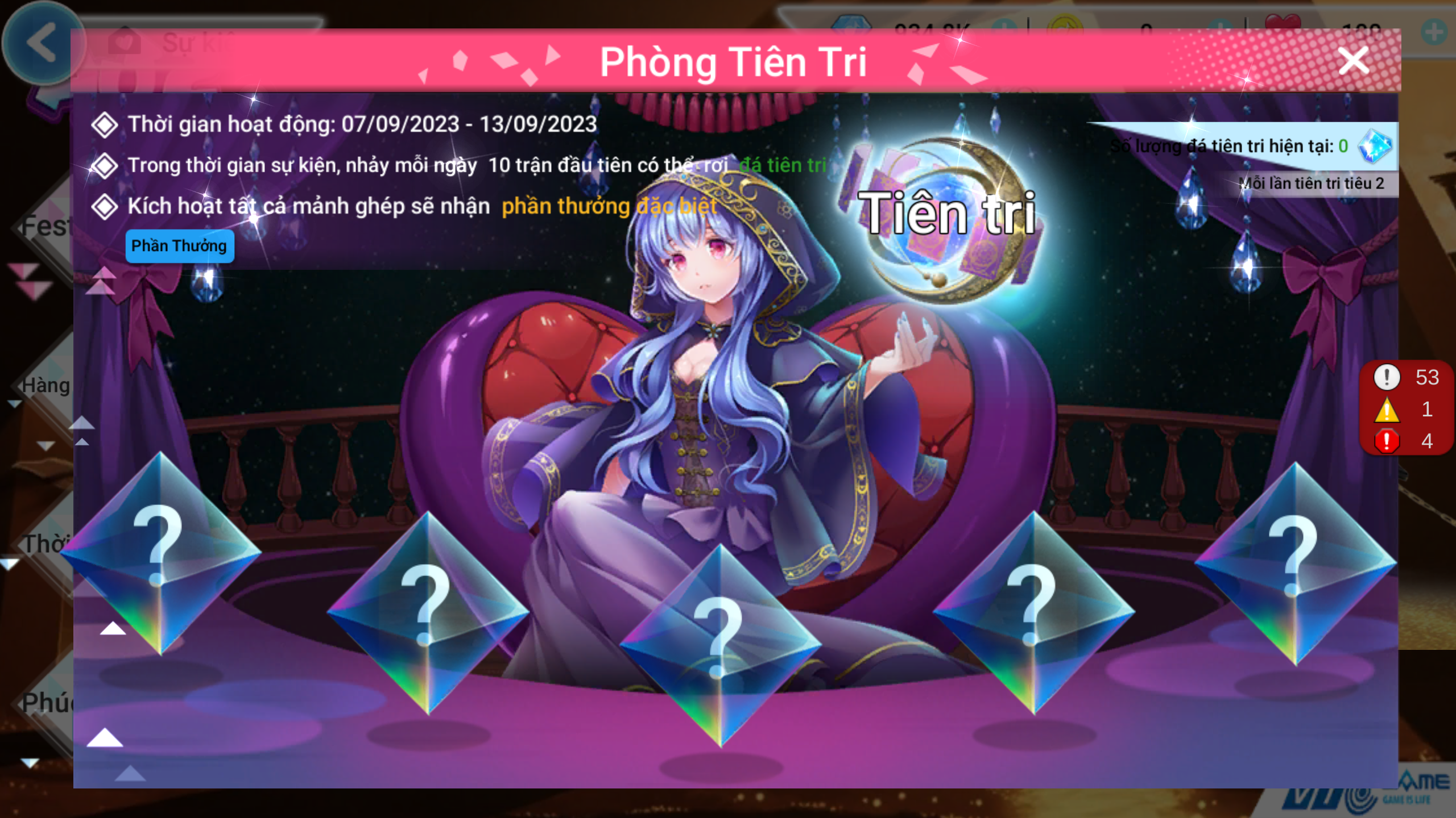 - Mỗi lần kích hoạt mảnh ghép tiêu hao 02 đá tiên tri.