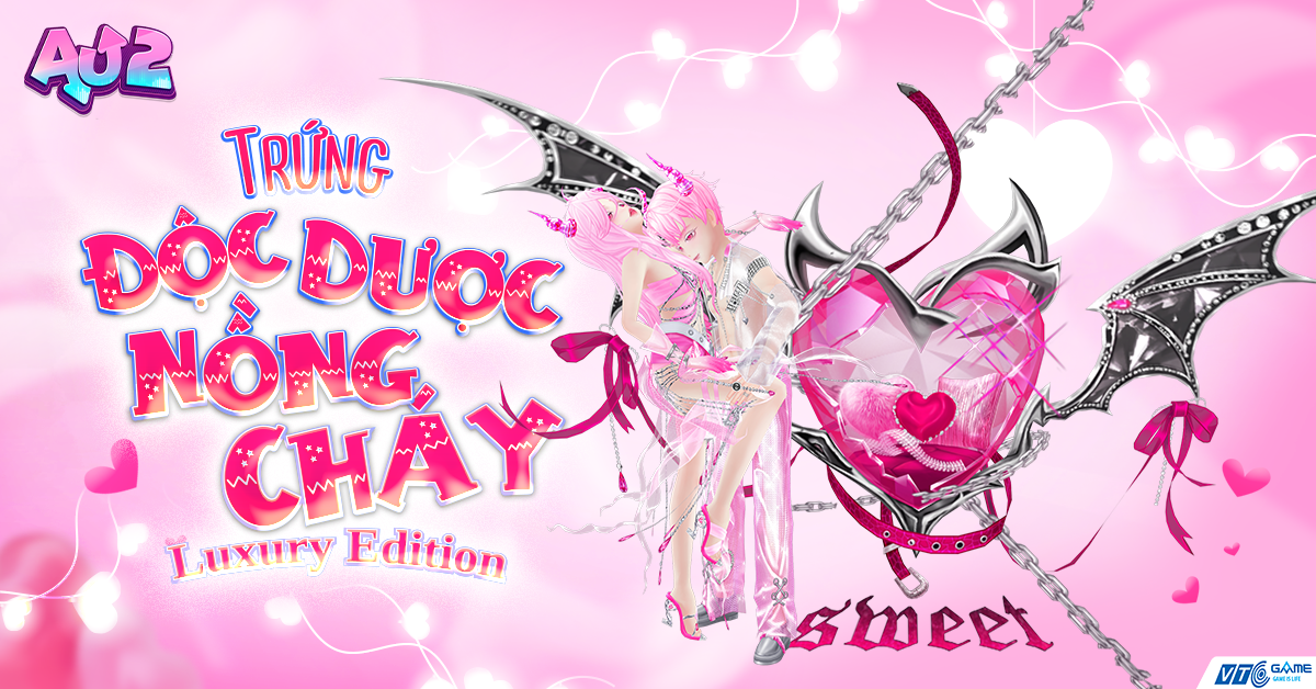 Vật phẩm đẳng cấp nhất chính là Ngai Độc Dược Nồng Cháy. Chiếc ngai được tạo hình từ một trái tim pha lê hồng khổng lồ đang rực cháy, bị khóa chặt bởi những xiềng xích bạc và bảo vệ bởi đôi cánh dơi quyền uy. Phía trên ngai là những dải ruy băng mềm mại, tạo nên một không gian vừa xa hoa vừa lộng lẫy. Ngự trên chiếc ngai này, bạn chính là chủ nhân của "độc dược" tình yêu, khẳng định vị thế độc tôn của mình trong thế giới Au 2.
