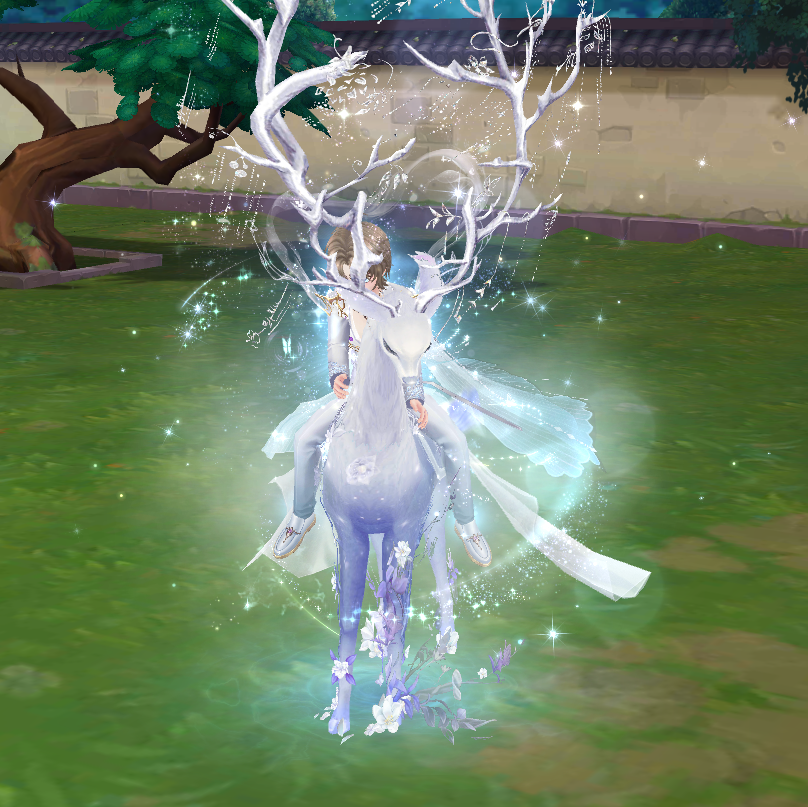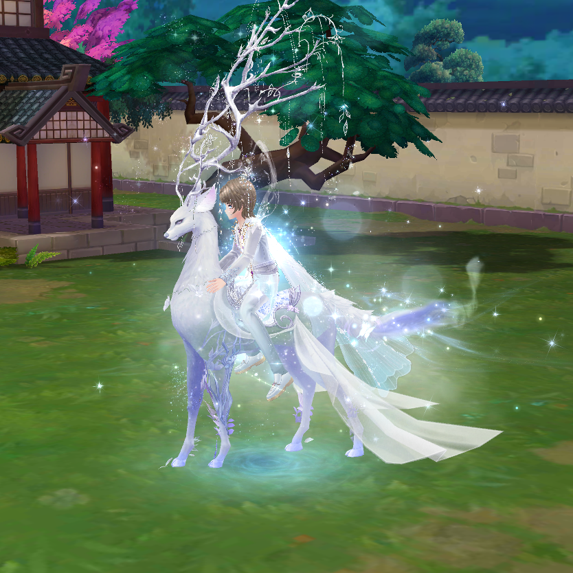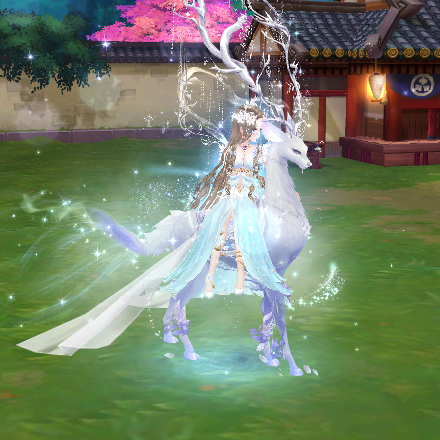 Lấy hình tượng hươu trắng, thân thể mang dáng vẻ mảnh mai mà cao quý. Phần đuôi uốn lượn như sương khói, gắn hiệu ứng lung linh khi nhân vật ngồi lên. Chiếc ngai này không chỉ là phương tiện di chuyển mà còn thể hiện đẳng cấp siêu thực của chủ nhân.