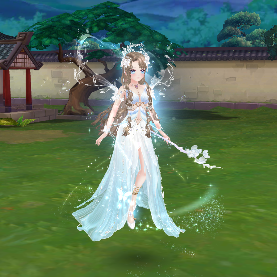 Thiết kế như nhành linh thảo tuyết trắng, với phần đầu trượng là một hồ điệp đá quý đang tỏa sáng. Ánh sáng phát ra nhè nhẹ, mang năng lượng bảo hộ và hồi sinh. Đây là vũ khí tượng trưng cho niềm tin, ánh sáng và sự thanh cao.