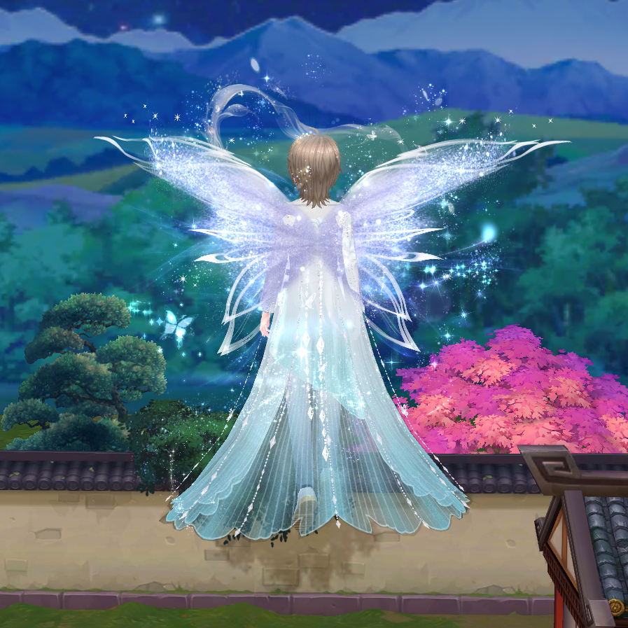 Thiết kế trong suốt tinh xảo, viền cánh được phủ ánh sáng bạc và bụi sao lung linh. Khi chuyển động, đôi cánh phát ra ánh sáng nhẹ như sương khói, khiến nhân vật tựa như đang bay giữa giấc mộng tuyết trắng.