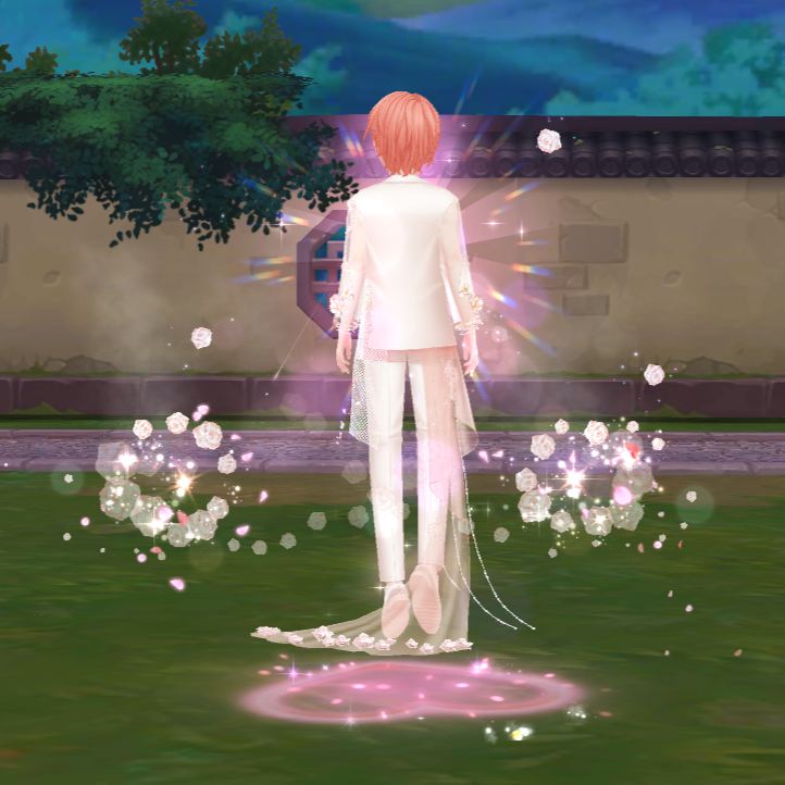Nam: Mang phong thái của một nghệ sĩ opera điềm tĩnh và lịch lãm, với áo vest đuôi tôm, họa tiết hoa hồng được thêu tinh xảo trên ngực áo và hiệu ứng voan nhẹ ở phần ống quần, tạo cảm giác uyển chuyển như đang bước lên sân khấu biểu diễn.