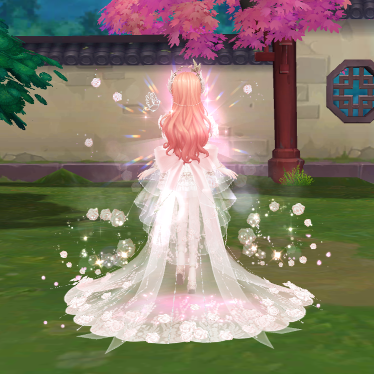 Nữ: Lộng lẫy như một nàng soprano bước từ khúc aria, sở hữu thiết kế tùng váy nhiều lớp, chất liệu voan trong suốt như làn sương, kết hợp cùng hoa hồng đỏ điểm xuyến. Chiếc vương miện nhỏ trên mái tóc xoăn nhẹ càng làm tổng thể thêm phần thanh khiết nhưng quyến rũ.