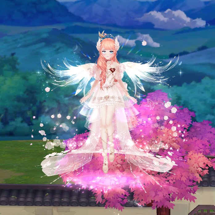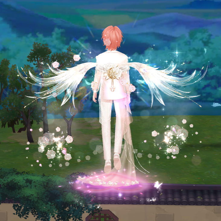 Đôi cánh lông trắng tinh khôi, trải dài nhẹ như lụa, phủ ánh vàng dịu tạo nên vẻ đẹp thiên thần nhưng vẫn mang nét sang trọng của thế giới opera cổ điển. Ở giữa là biểu tượng hoa hồng trắng, được gắn kết bằng khung kim loại vàng hồng, như một nốt nhạc cao vút trong bản tình ca Bel Canto.